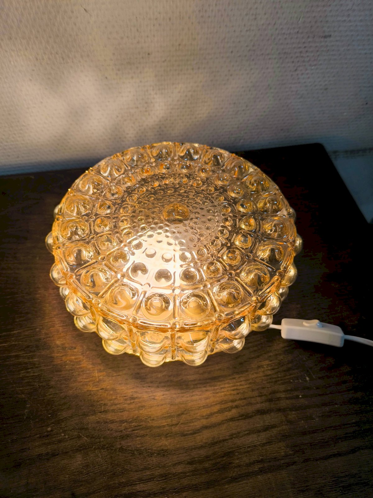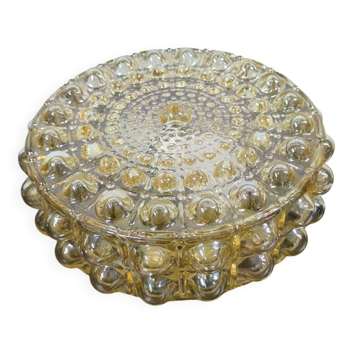 Amber bubble glass round ceiling light Philips, 1960 Artdeco Golden