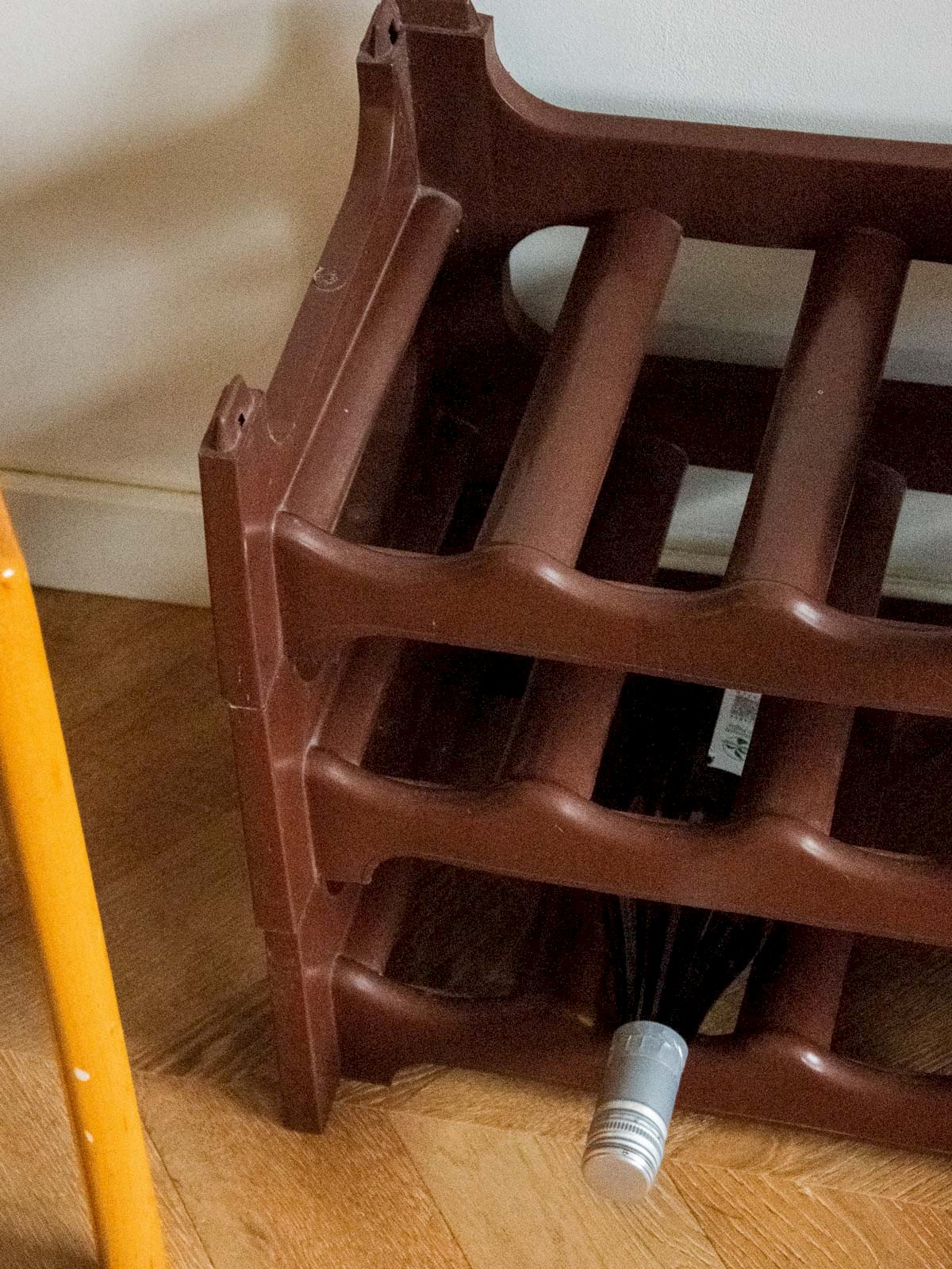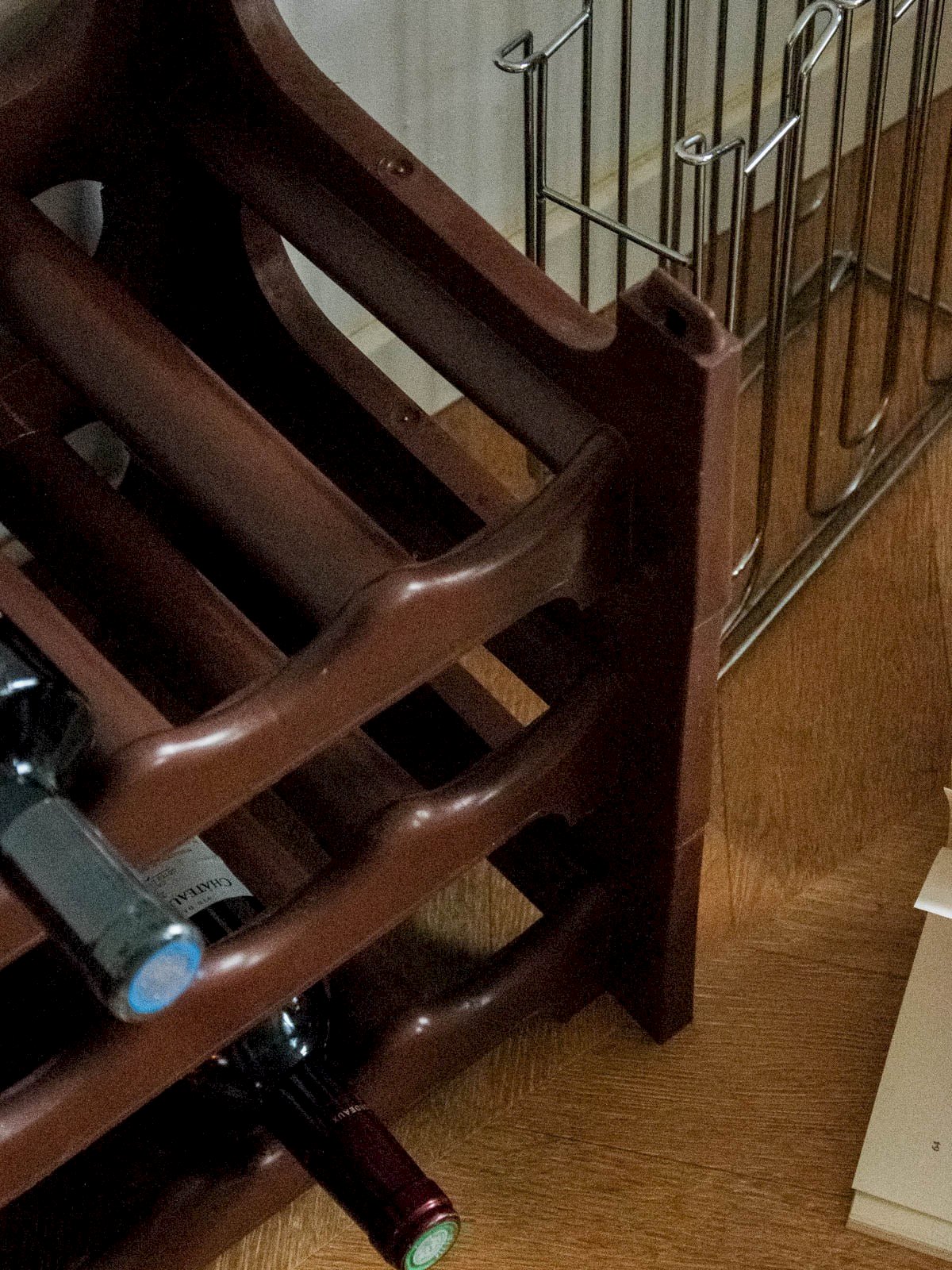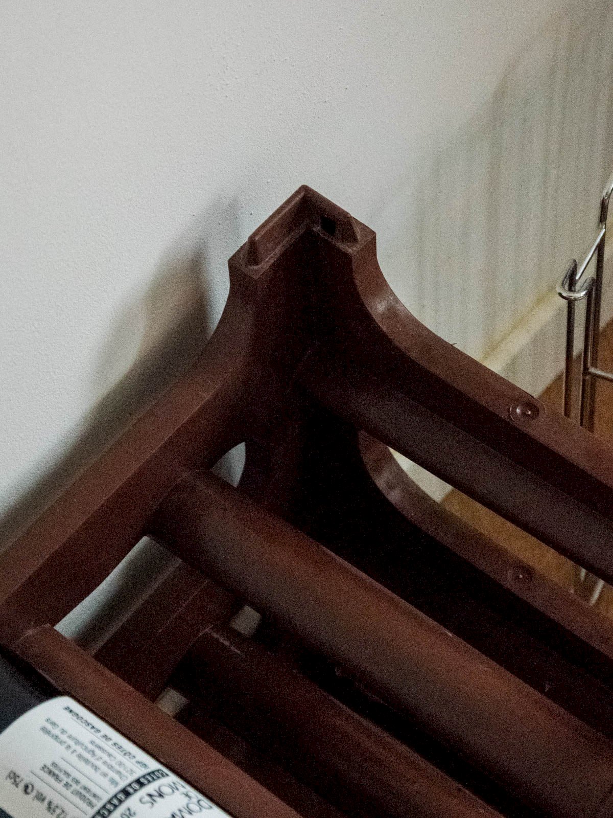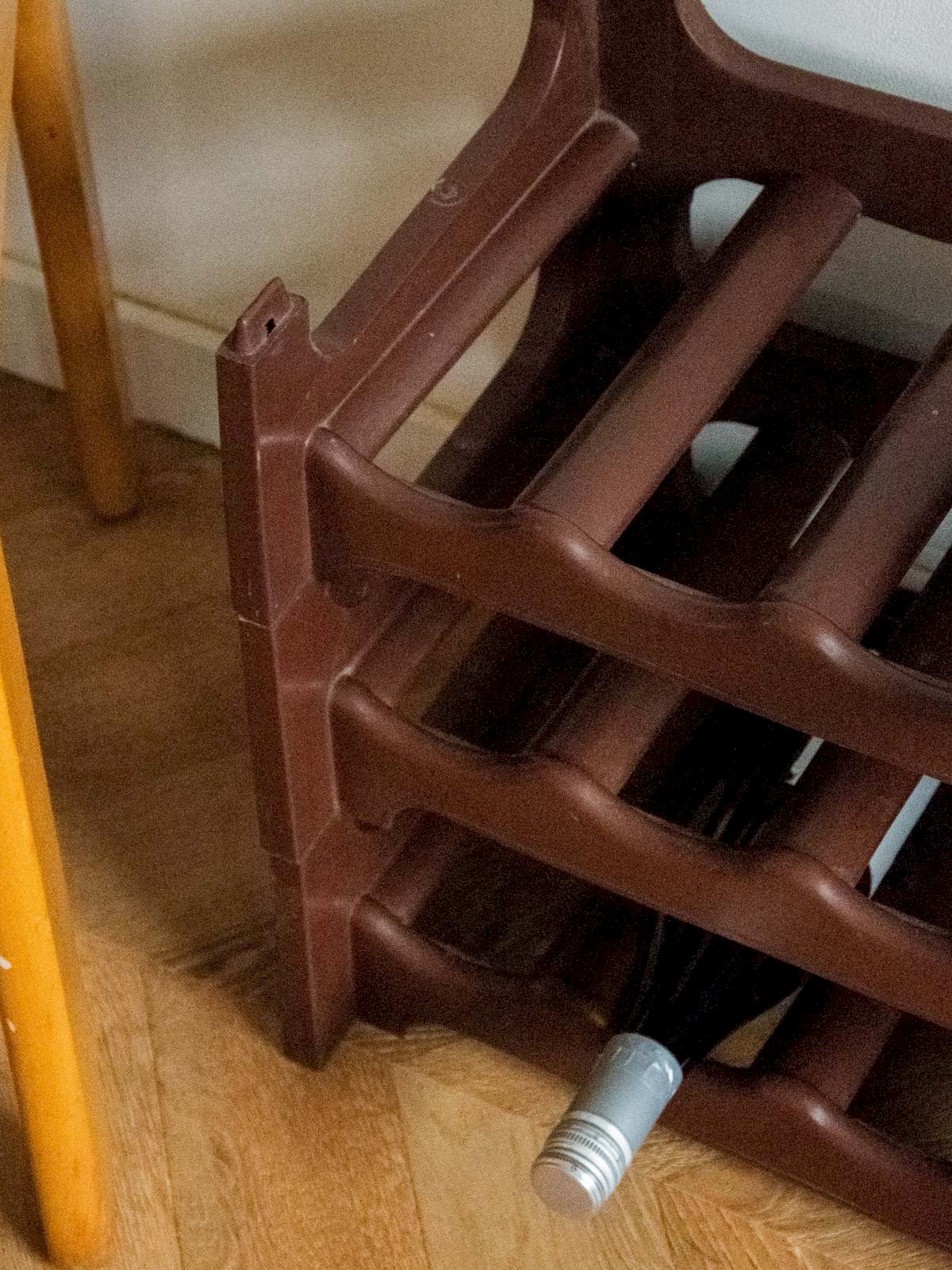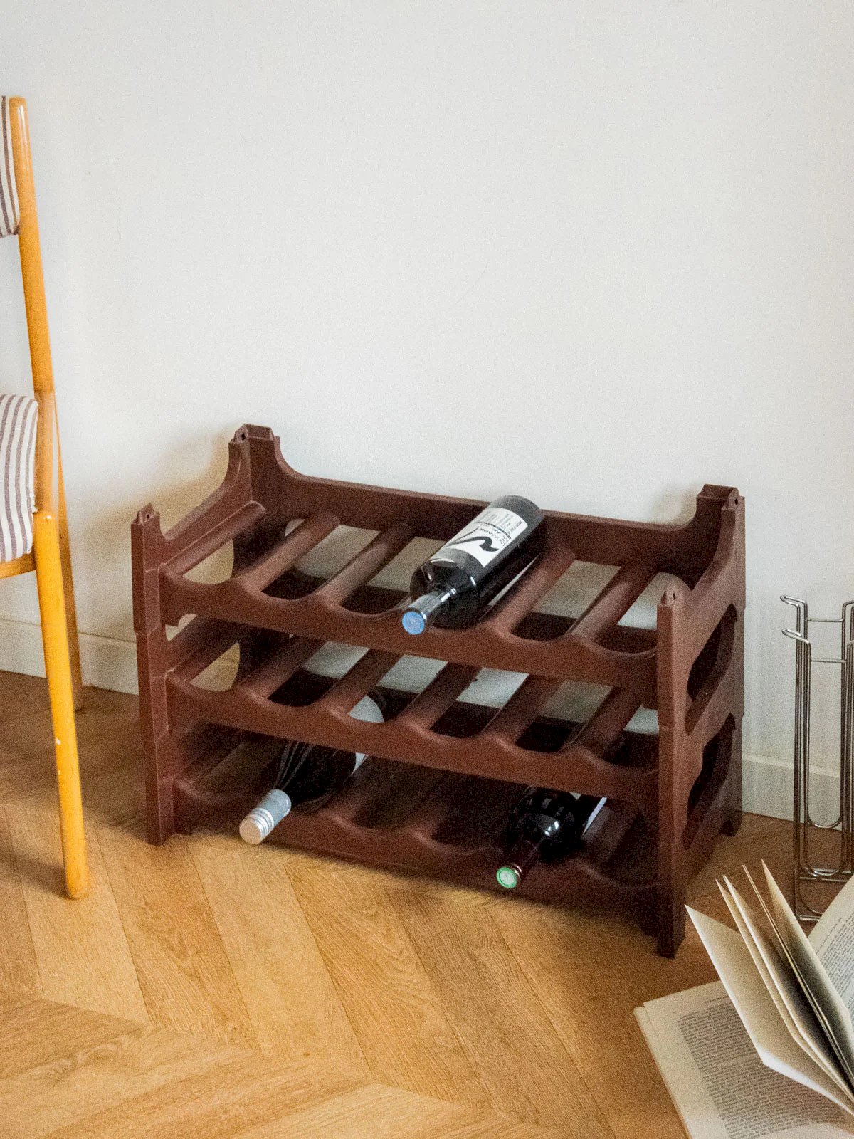 Add a brown plastic wine rack with a practical and discreet design, ideal for storing two bottles with ease. Its lightweight and durable material makes transportation and maintenance easy, while its compact proportions fit harmoniously into a modern kitchen or bar corner. Its understated finish adds a warm and functional touch to your interior. Convenient for everyday use or drinks with friends, it optimizes space while remaining easy to clean. Sold individually, two units are available. Length: 60 cm Width: 28 cm Height: 41 cm Condition: Used: Item has been used. Item shows some signs of superficial wear, ...Used: Item has been used. Item shows some signs of superficial wear, fully operational and functioning correctly. It may be a demonstration model or an item returned to the store after a short period of use. any possible imperfections. Brand: Debongout Type: Thrifted Product Material: Plastic Style: Country
