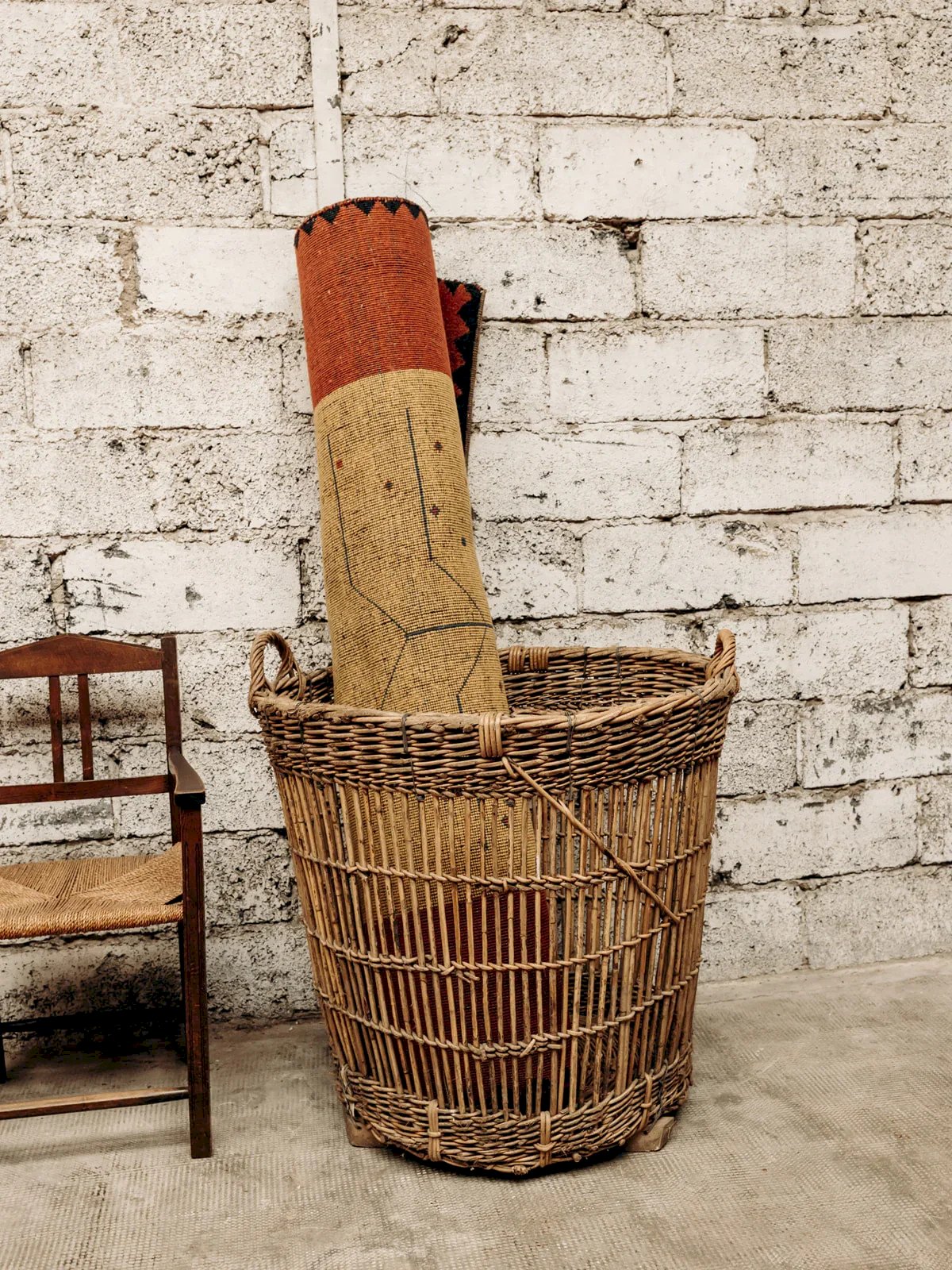 Discover the giant dark rattan/wicker basket, combining elegance and practicality. With its slightly tilted shape and small handles, this basket is ideal for decoration while adding a vintage touch to your interior. Perfect for storing your magazines, toys, or accessories, it harmoniously fits into any type of arrangement. Bring a natural and warm note to your decor with this basket featuring a refined design. Length: 84 cm Width: 88 cm Height: 93 cm Condition: Used: Item that has been used. Item showing some superficial signs of wear, fully operational and functioning correctly. It may be a demonstration model or a returned item after a short period of use. any imperfections. Brand: Debongout Type: Vintage product Material: Rattan, Wicker Style: Country