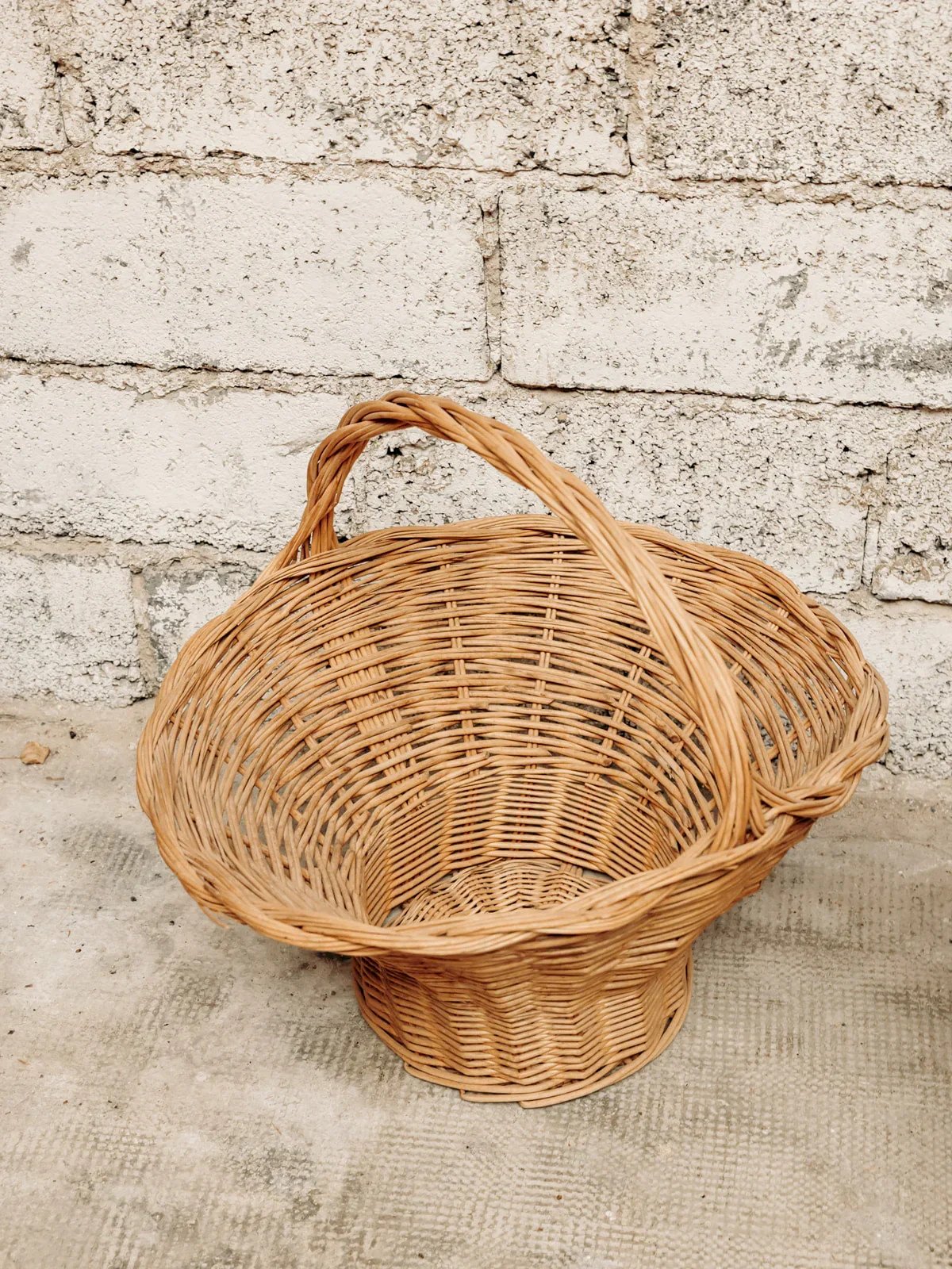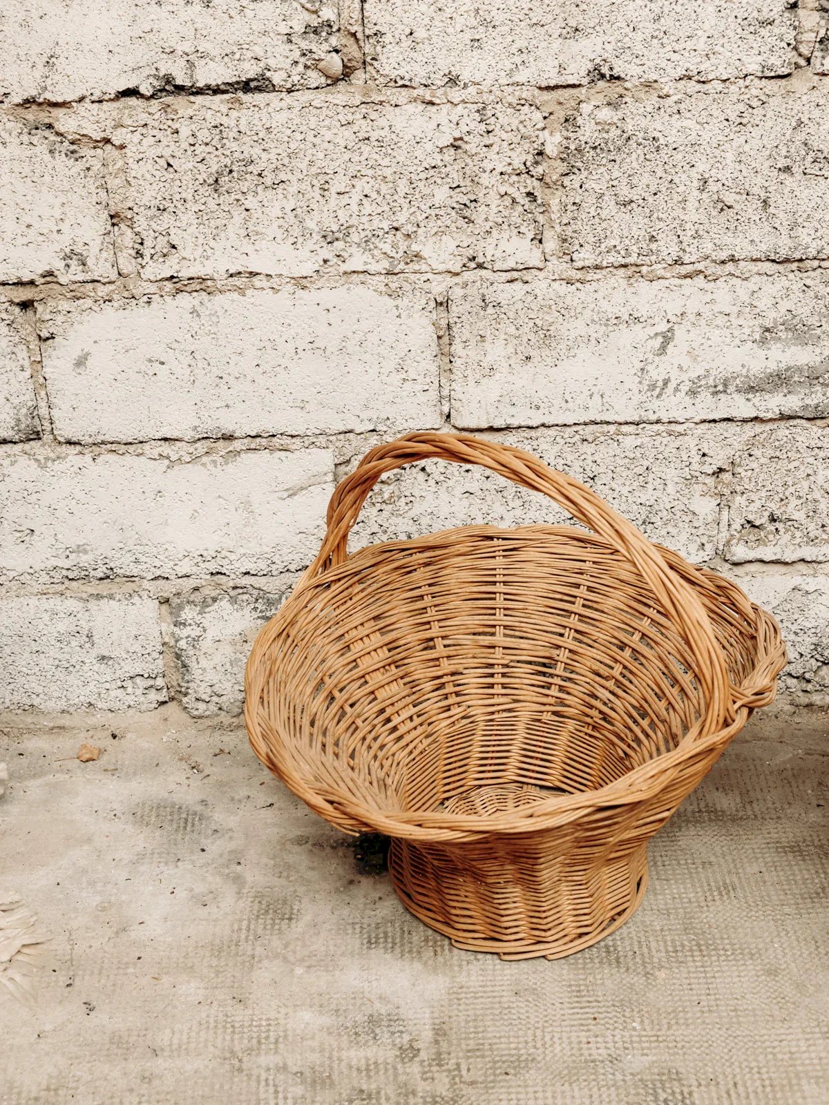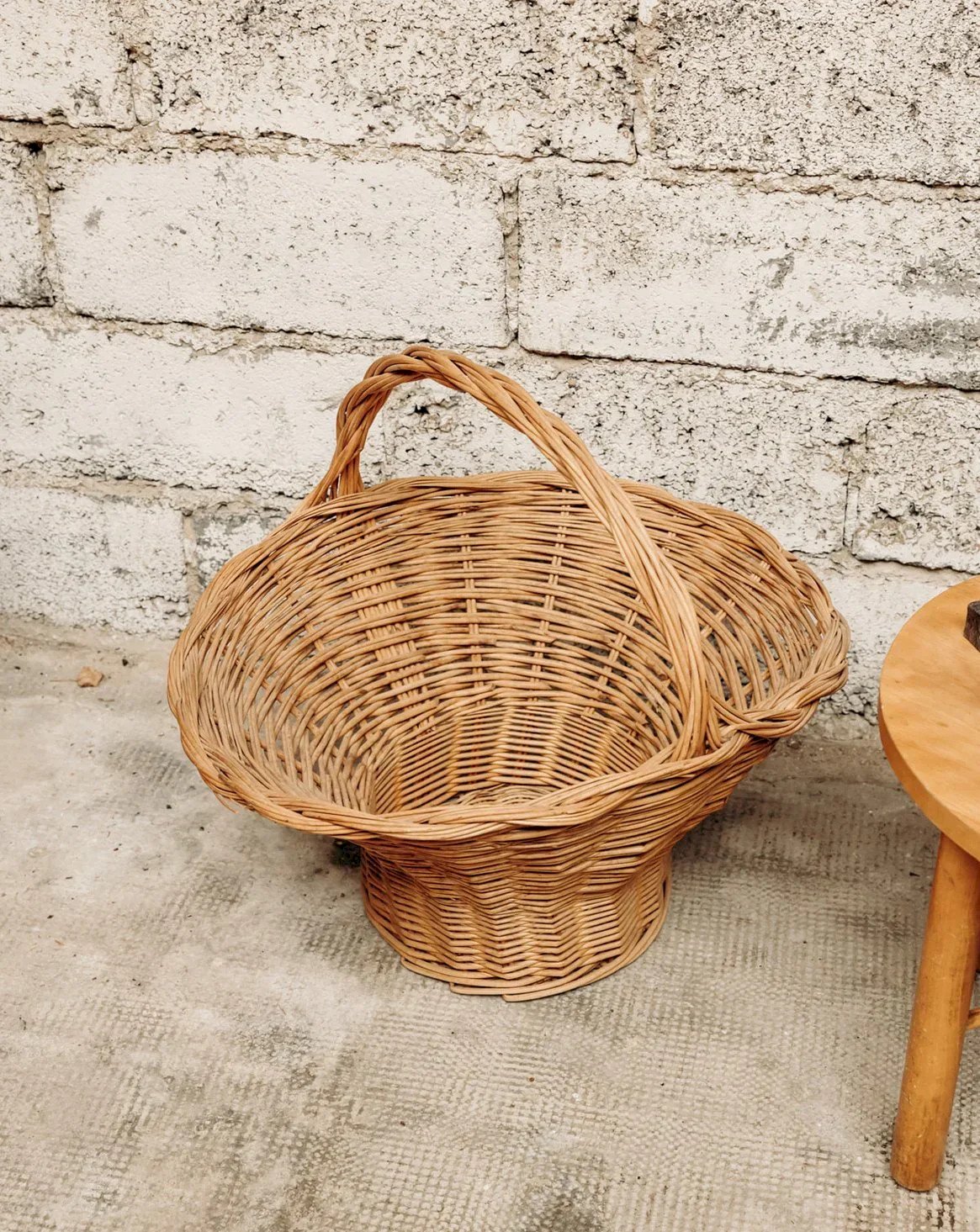 Add a touch of authenticity to your interior with this charming round wicker basket. Its flared shape and small diameter at the center make it a practical and elegant accessory, perfect for storage or as a decorative piece. With a large handle, this basket is easily portable, ideal for everyday use. Its timeless design harmoniously fits into all decor styles. Height with handle: 60 cm Height without handle: 34 cm Diameter: 68 cm Center diameter: 30 cm Condition: Used item. Item showing some superficial signs of wear,... Used item. Item showing some superficial signs of wear, fully operational and functioning properly. It may be a demonstration model or an item returned to the store after a short period of use. possible imperfections. Brand: Debongout Type: Thrifted product Material: Wicker Style: Country