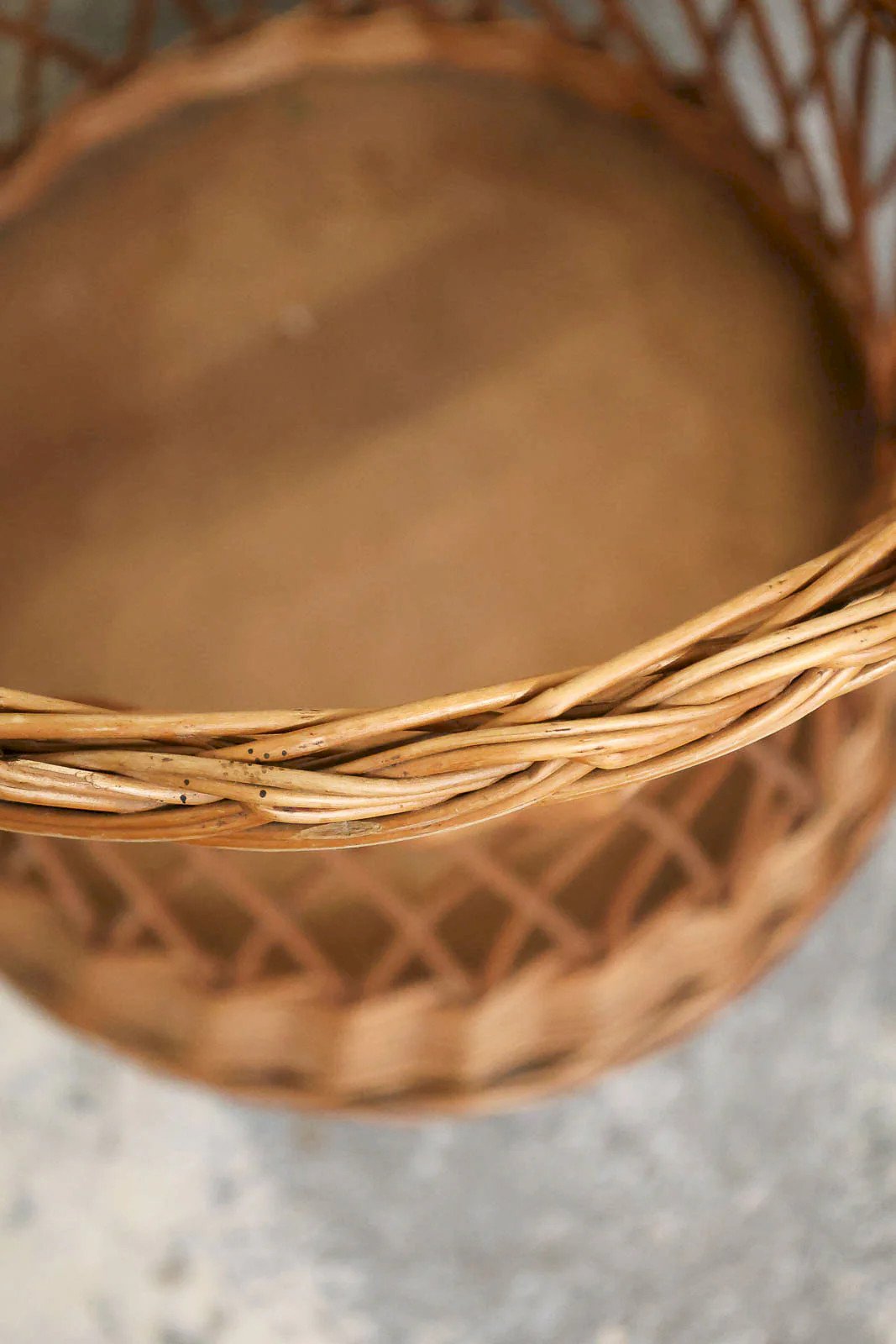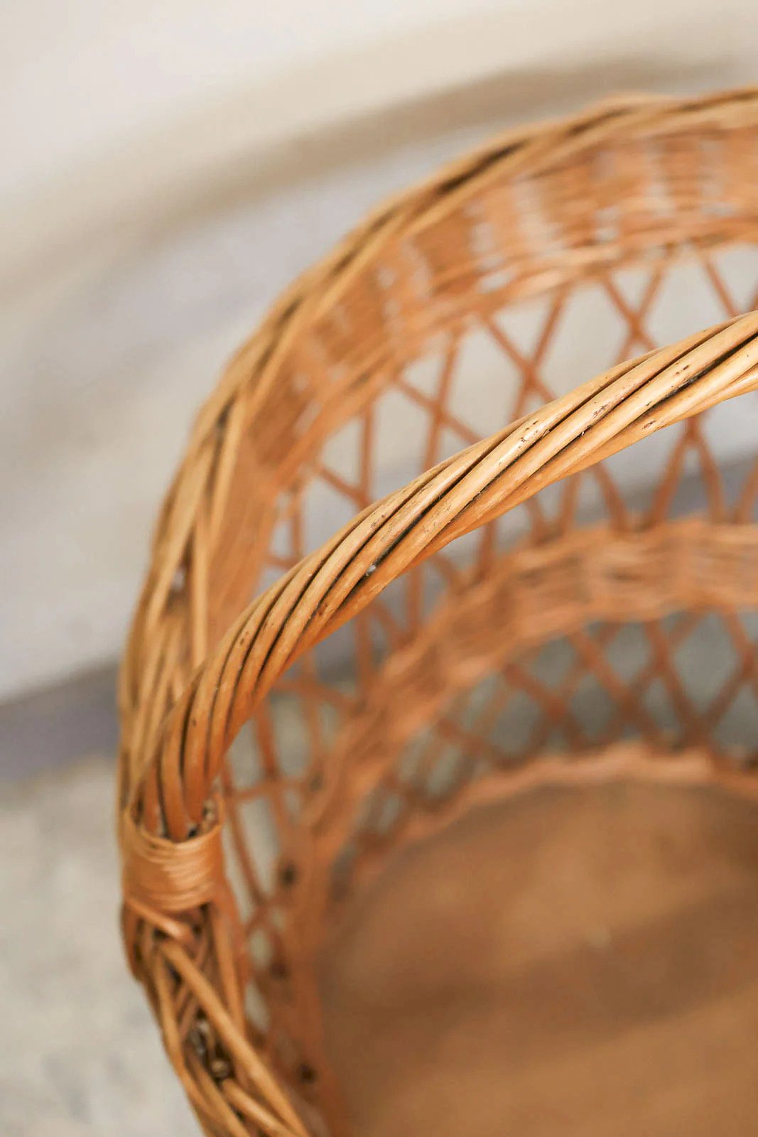 Adopt this large braided wicker basket, with regular weaving and natural lines that bring an authentic touch to the entrance. Designed to serve as an umbrella holder, it accommodates umbrellas, canes, or throws thanks to its generous height and diameter, while its handle makes it easy to move as needed. Its warm tone and lightweight material create a friendly and rustic atmosphere, perfect for structuring a practical corner without weighing down the space. Height with handle: 72 cm Height of the basket: 55 cm Diameter: 45 cm Condition: Used: Item that has been used. Item showing some superficial signs of wear, fully operational and functioning correctly. It could be a demonstration model or an item returned to the store after a short period of use. Possible imperfections. Brand: Debongout Type: Vintage product Material: Wicker Style: Country