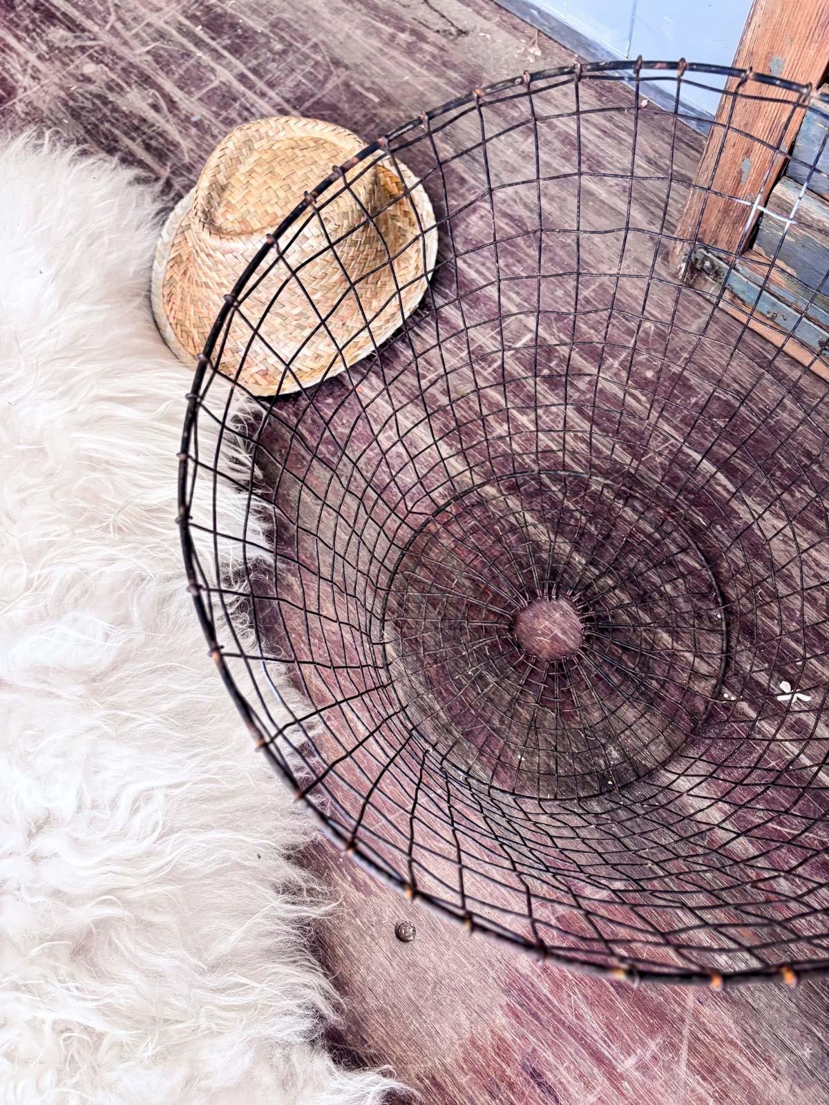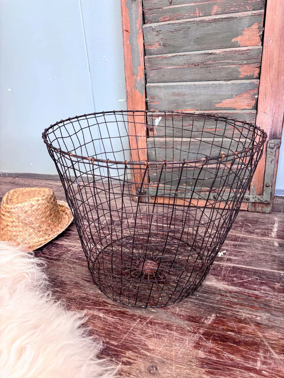 Add a vintage touch to your interior with this round metal wire basket. Perfect for organizing your small items or as a decorative element, it combines retro aesthetics with functionality. Its lightweight and airy structure makes it easy to move, while its timeless design fits all styles. An essential accessory for a chic and practical decoration! Height: 34 cm Diameter: 43 cm Condition: Used: Item has been used. Item shows some superficial signs of wear... Used: Item has been used. Item shows some superficial signs of wear, fully operational and functioning correctly. It may be a demonstration model or a returned item after a short period of use. The possible imperfections. Brand: Debongout Type: Thrifted Product Material: Metal Style: Country