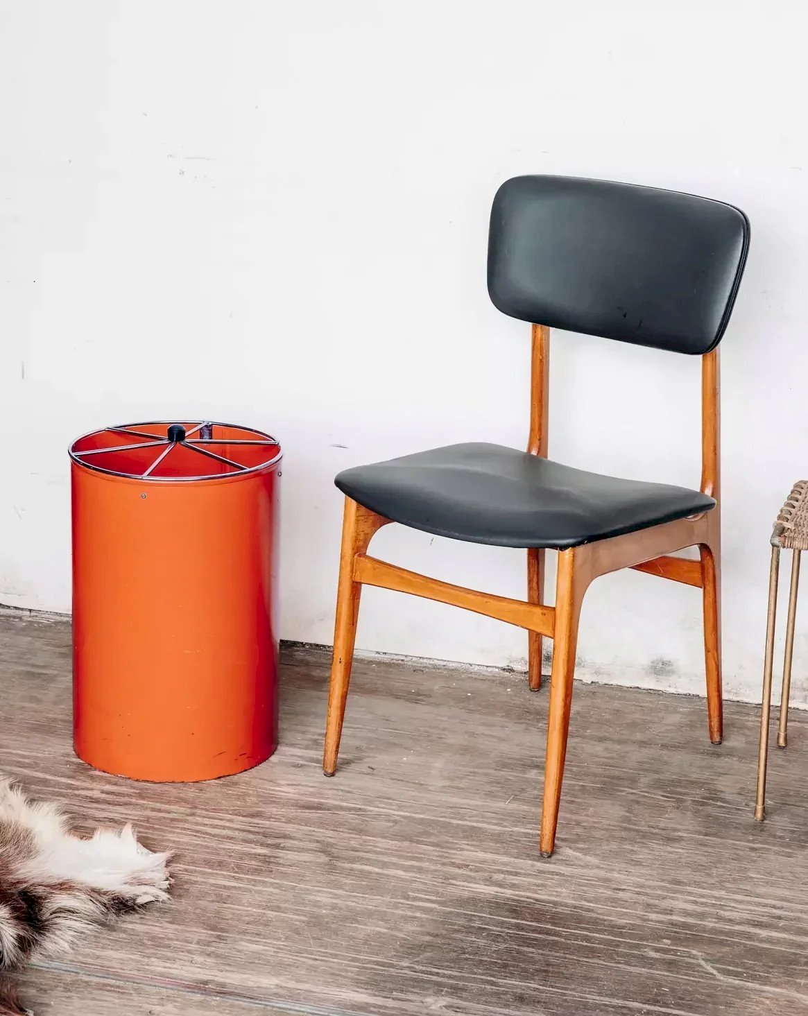 This cylindrical orange metal umbrella stand with a chrome finish on top is a true decorative object, both practical and stylish. The touch of black plastic on the top adds a modern detail to this bold design. Ideal for adding a vibrant splash of color to an entryway, it combines functionality and aesthetics while bringing an elegant retro touch to your interior. An accessory not to be missed to brighten your everyday life! Height: 47 cm Diameter: 32 cm Condition: Used: Item that has been used. Item showing some superficial signs of wear, fully operational and working correctly. It may be a demonstration model or a returned item after a short period of use. Possible imperfections. Brand: Debongout Type: Thrifted product Material: Metal Style: Country