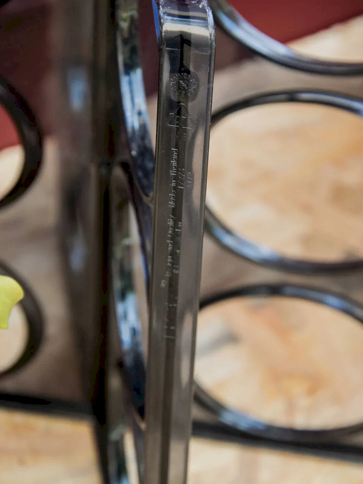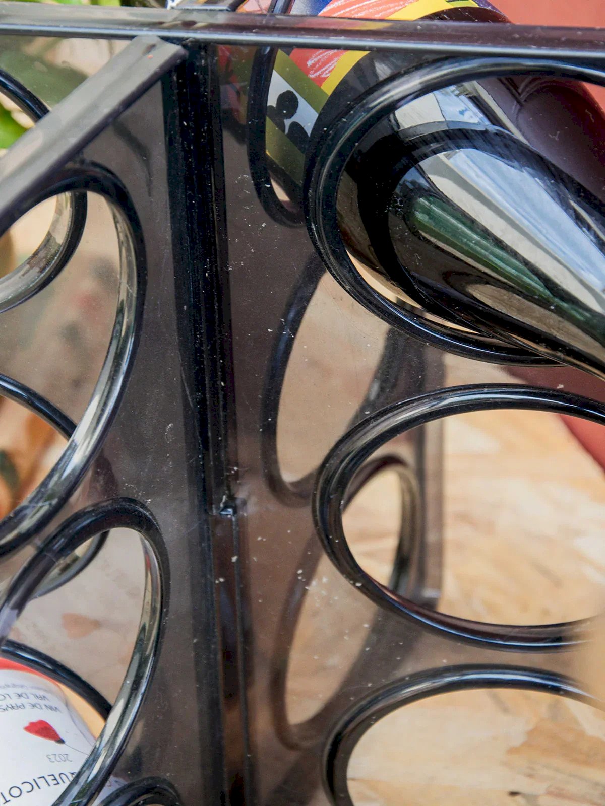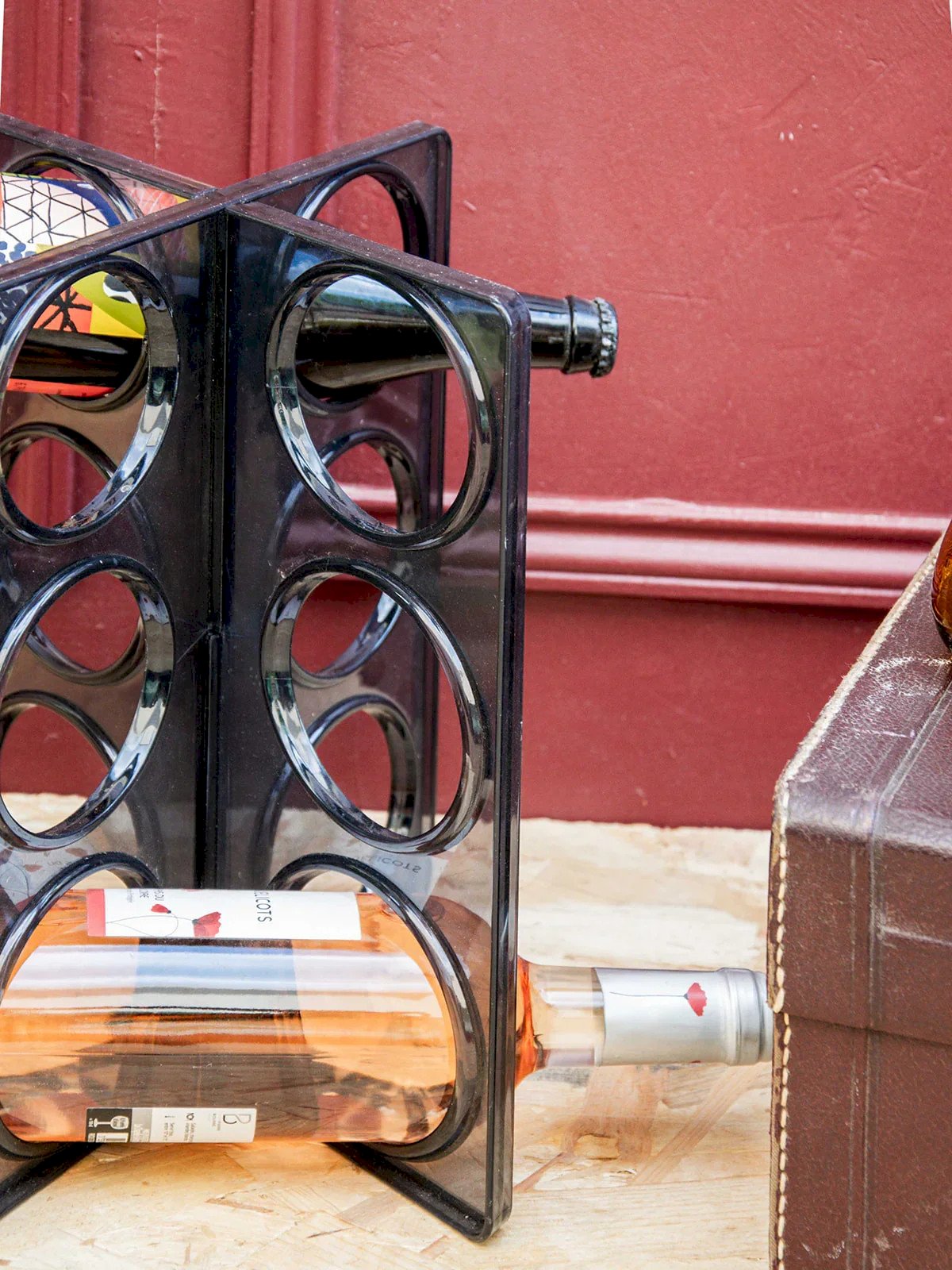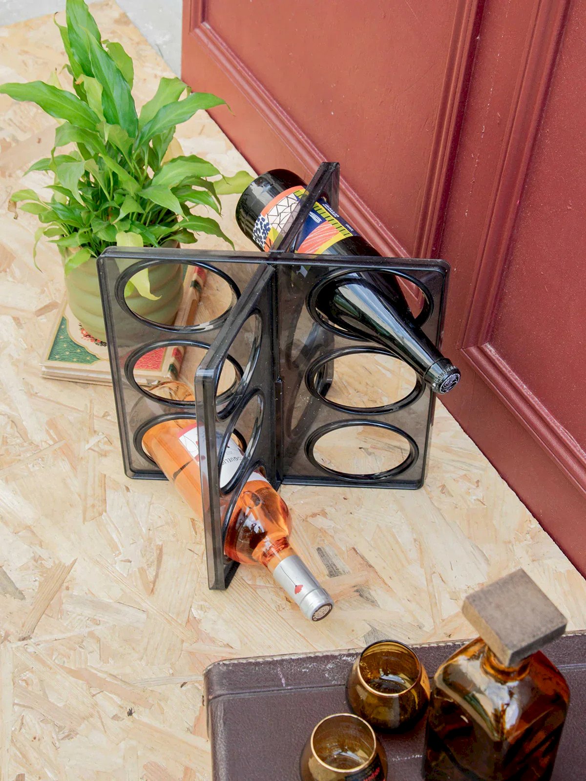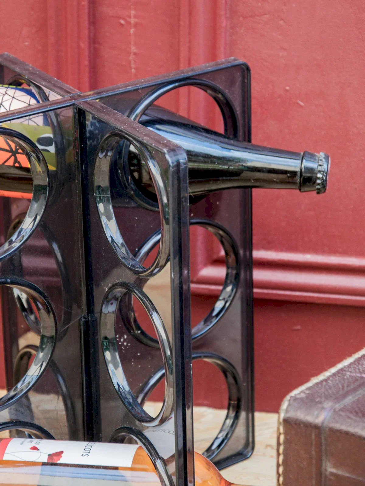 Discover this vintage bottle rack signed by Ikea, both practical and full of character. Made of molded smoky gray plastic, it can hold up to six bottles and stands out as a design piece with retro charm. A slight mark at the intersections bears witness to its history without harming its use. Perfect for adding an original touch to your wine corner or kitchen. Length: 26 cm Width: 18.5 cm Height: 31 cm Condition: Used: Item has been used. Item shows some signs of superficial wear, fully operational and working properly. It may be a demonstration model or a returned item after a short period of use. The possible imperfections. Brand: Debongout Type: Vintage Product Material: Plastic Style: Country