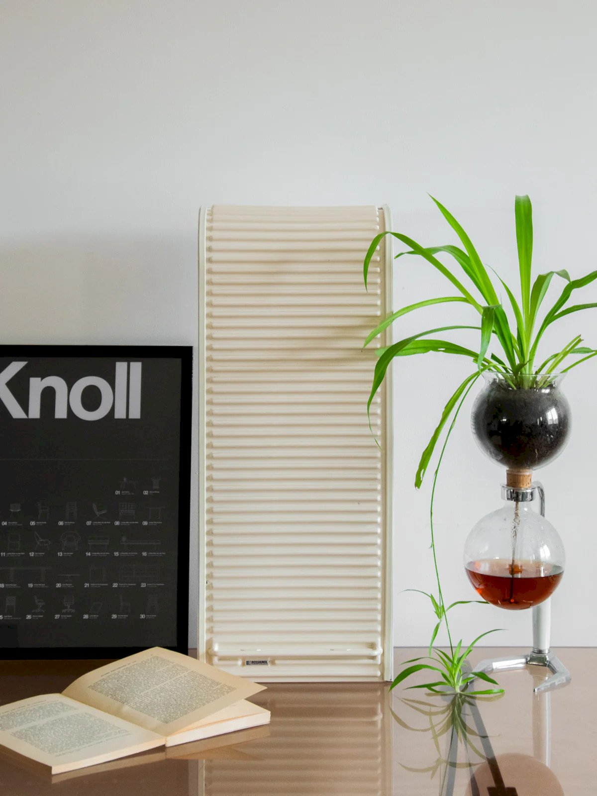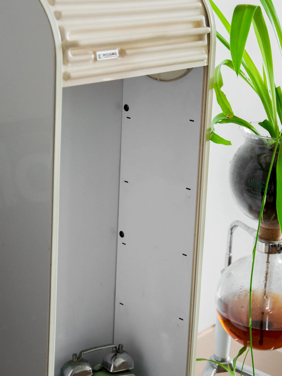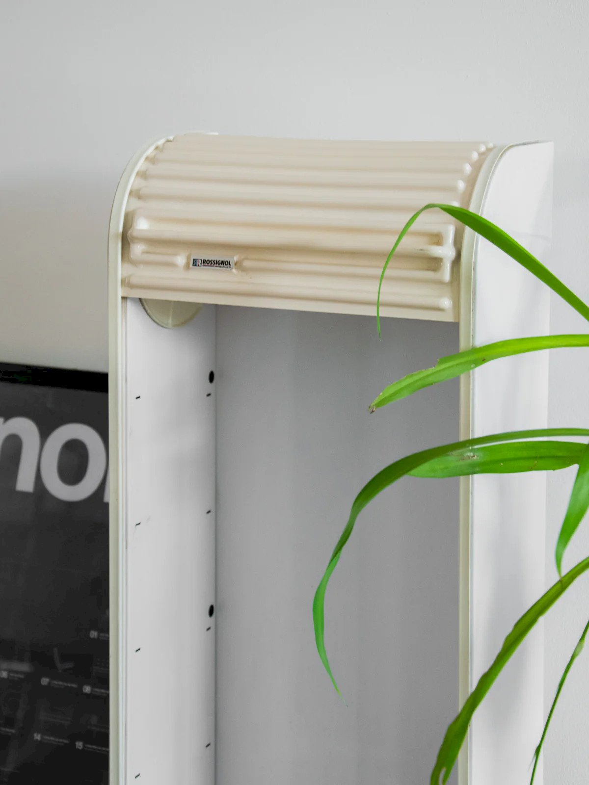 Discover the elegance of the Rossignol metal wall shelf, featuring a bold design with its ribbed rolling shutter and rounded top. Its cream hue adds a touch of softness to your interior while offering practical and aesthetically pleasing storage space. Perfect for a living room or bedroom, this shelf combines functionality and style, seamlessly fitting into any decor. Choose this essential piece of furniture that blends modernity with timeless charm. Length: 25 cm Width: 15 cm Height: 60.5 cm Condition: Used: An item that has been used. Item showing some superficial wear marks, ... Used: An item that has been used. Item showing some superficial wear marks, fully operational and functioning correctly. It may be a demonstration model or a returned item after a short period of use. Any imperfections may exist. Brand: Debongout Type: Vintage product Material: Metal Style: Country