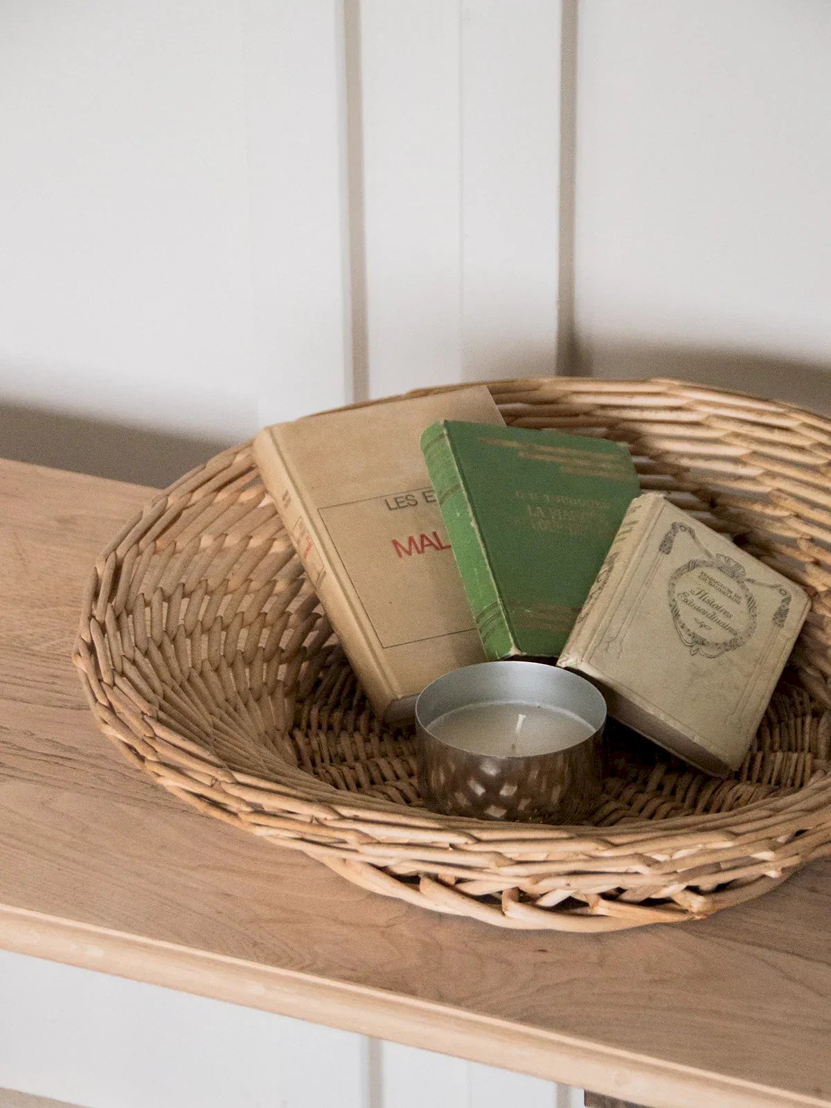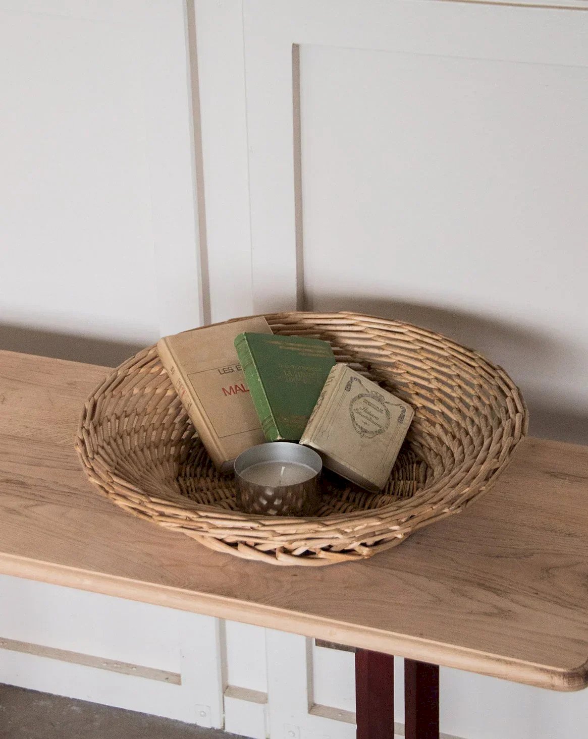 The round and flared country basket is an essential accessory to add a warm touch to your interior. Made of natural wicker, it stands out with its elegant and timeless design. Practical and aesthetic, this basket will keep your spaces well organized while adding a rustic charm to your decor. Whether for storing a blanket, toys, or fruits, it meets all your needs with style. Web exclusive, the meeting will take place at your home! Height: 12 cm Diameter: 53 cm Interior diameter: 28 cm Condition: Used: Item has been used. Item showing some superficial signs of wear, fully operational and functioning correctly. It may be a display model or an item returned to the store after a short period of use. Any possible imperfections. Brand: Debongout Type: Thrifted product Material: Wicker Style: Country
