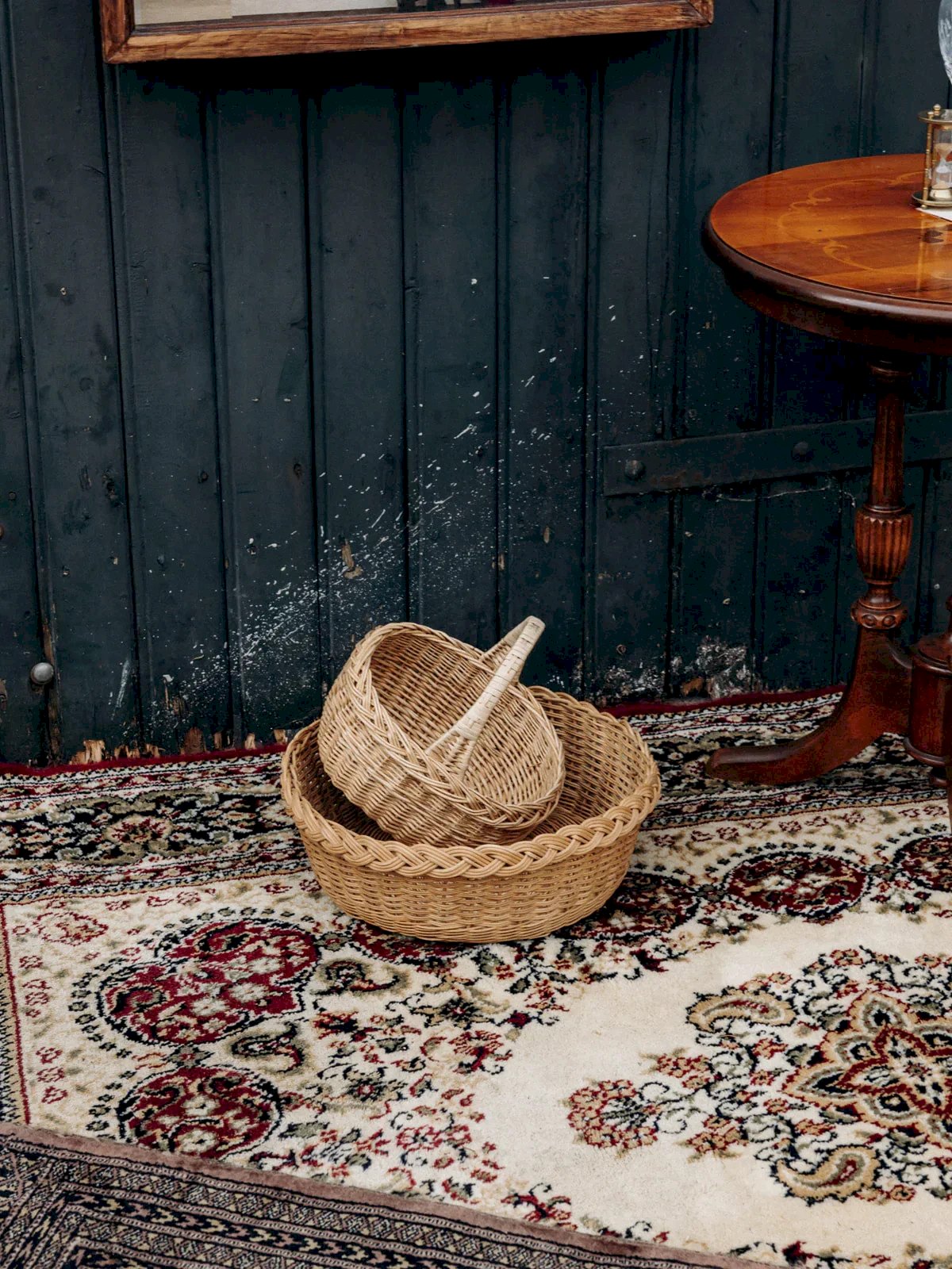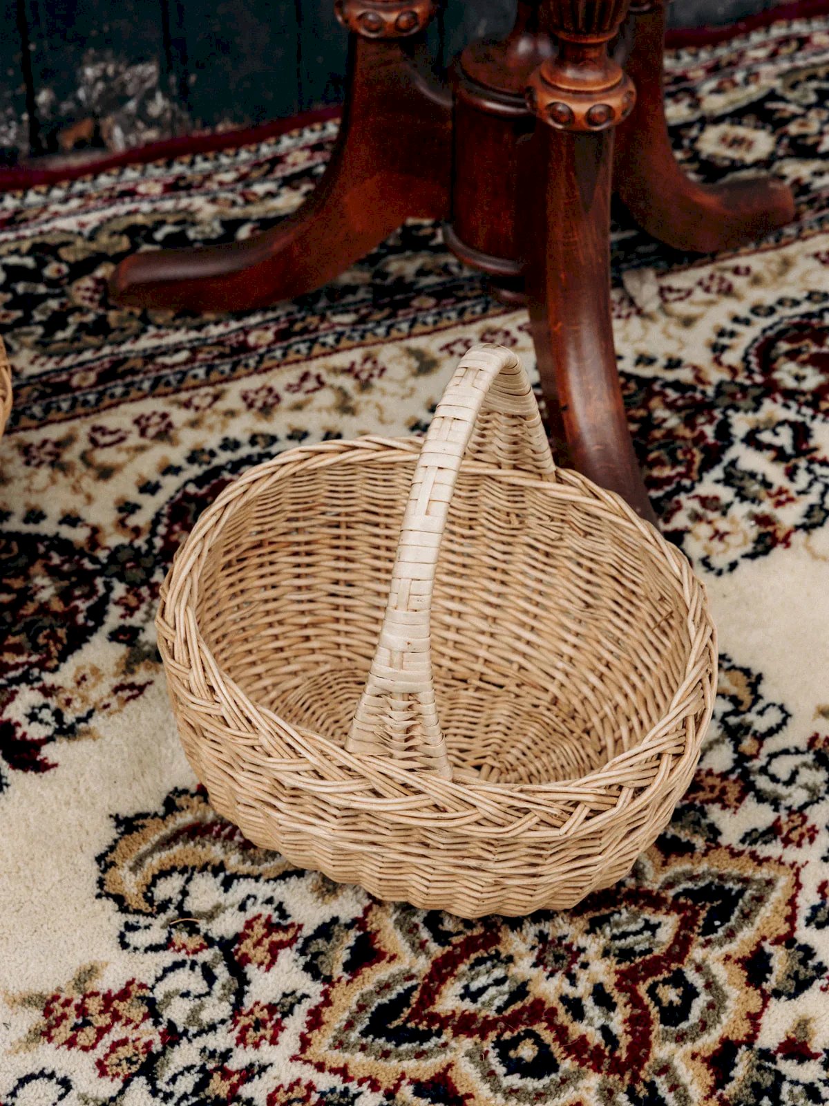Discover this charming small wicker basket, perfect for adding a bohemian touch to your interior. With its pretty braided handle, it combines practicality and aesthetics, ideal for organizing your small items or as a decorative element. Compact and easy to integrate into any corner of your home, this basket is a trendy accessory that will bring a warm note to your space. Length: 24 cm Width: 19 cm Height: 23 cm Condition: Used item. Item showing some signs of superficial wear... Used item. Item showing some signs of superficial wear, fully operational and functioning correctly. It may be a demonstration model or an item returned to the store after a short period of use. possible imperfections. Brand: Debongout Type: Thrifted product Material: Wicker Style: Country