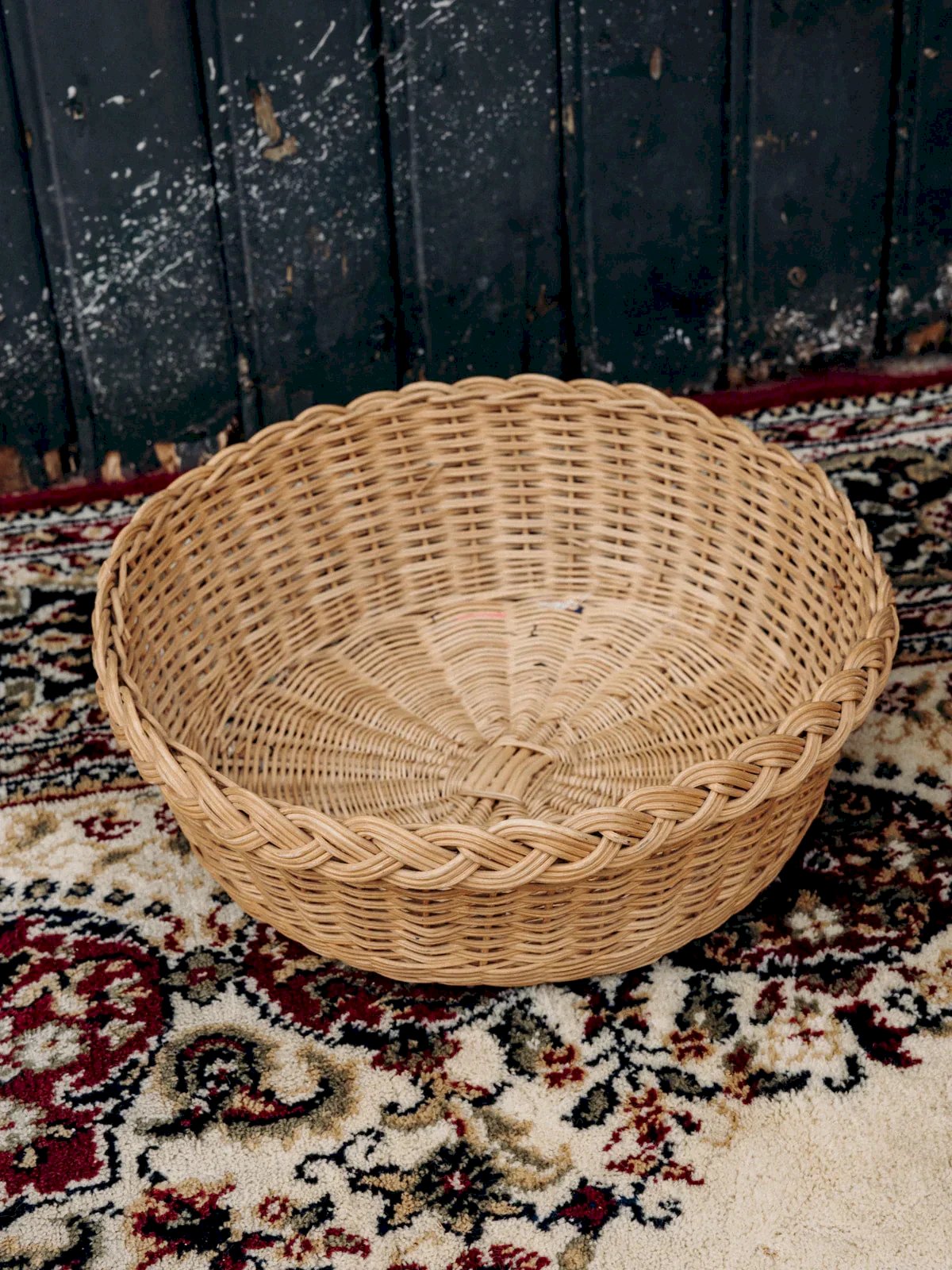 Add a touch of elegance to your interior with this woven wicker basket. Its delicate design and braided detail all around give it a timeless charm, combining sturdiness and durability. Ideal for organizing your small items or as a decorative element, it adds a natural and warm note to your space. A piece that is both practical and aesthetic to enhance your decor. Width: 12 cm Diameter: 33 cm Condition: Used: Item has been used. Item showing some superficial signs of wear... Used: Item has been used. Item showing some superficial signs of wear, fully operational and functioning correctly. It may be a display model or an item returned to the store after a short period of use. any imperfections. Brand: Debongout Type: Thrifted product Material: Wicker Style: Country