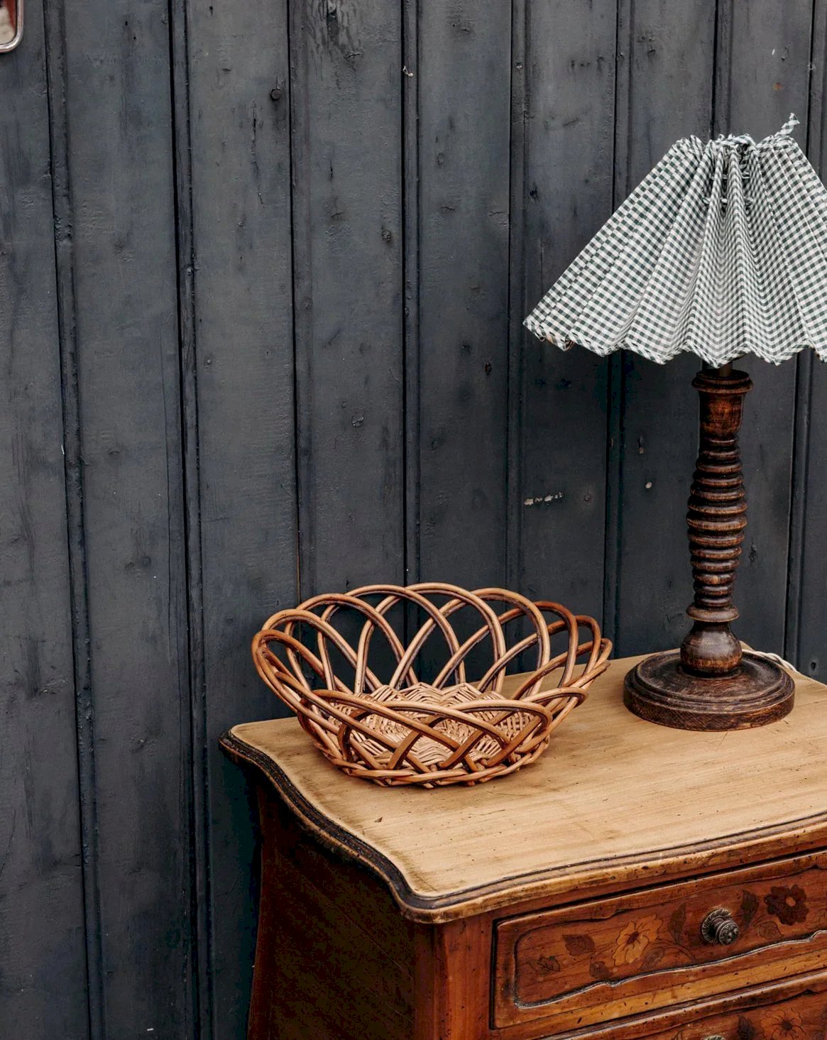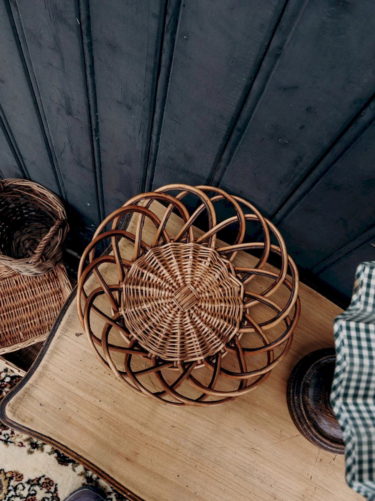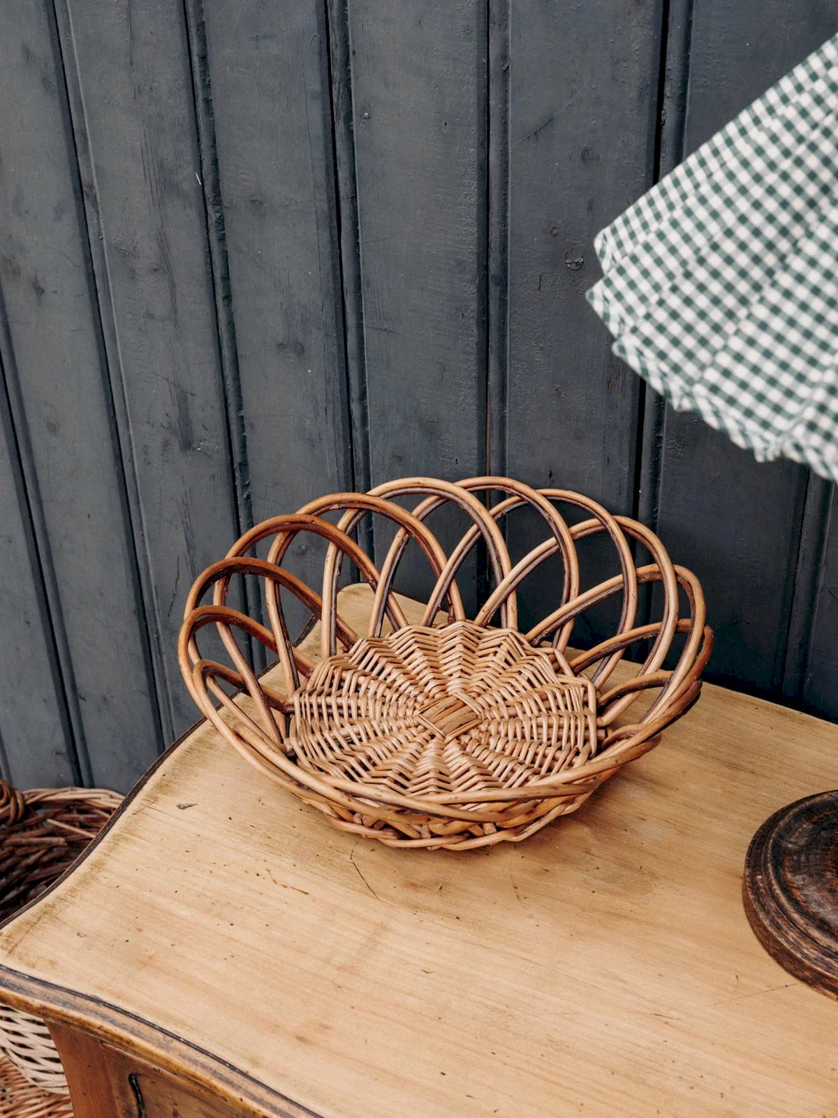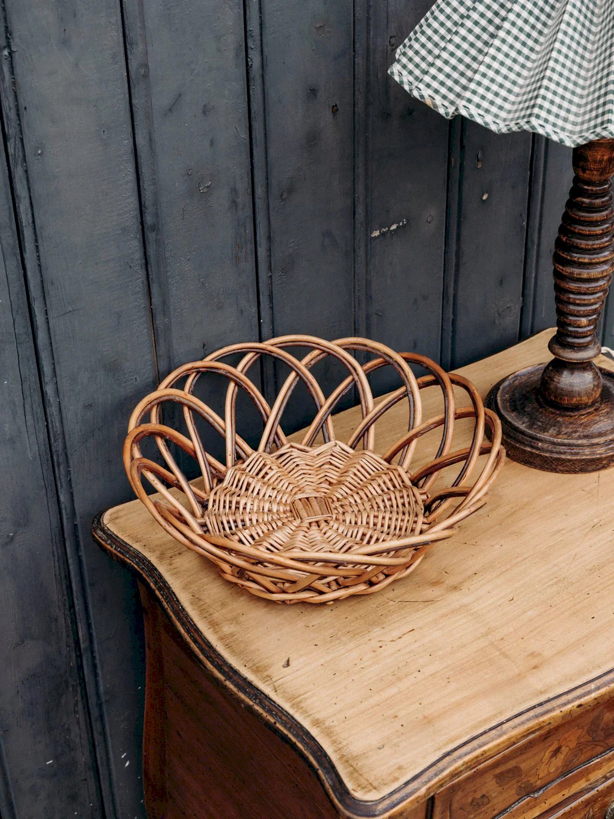Add a chic and natural touch to your interior with this wicker basket in wooden and black shades. Perfect for storing your small objects or as a decorative element, it combines aesthetics and practicality. Its sleek and refined design seamlessly integrates into any room, bringing an elegant and functional note to your space. Height: 8.5 cm Diameter: 26 cm Condition: Used item. The item shows some signs of superficial wear... Used item. The item shows some signs of superficial wear, fully operational and functioning correctly. It may be a demonstration model or a returned item after a short period of use, with potential imperfections. Brand: Debongout Type: Thrifted product Material: Wicker, Rattan Style: Country