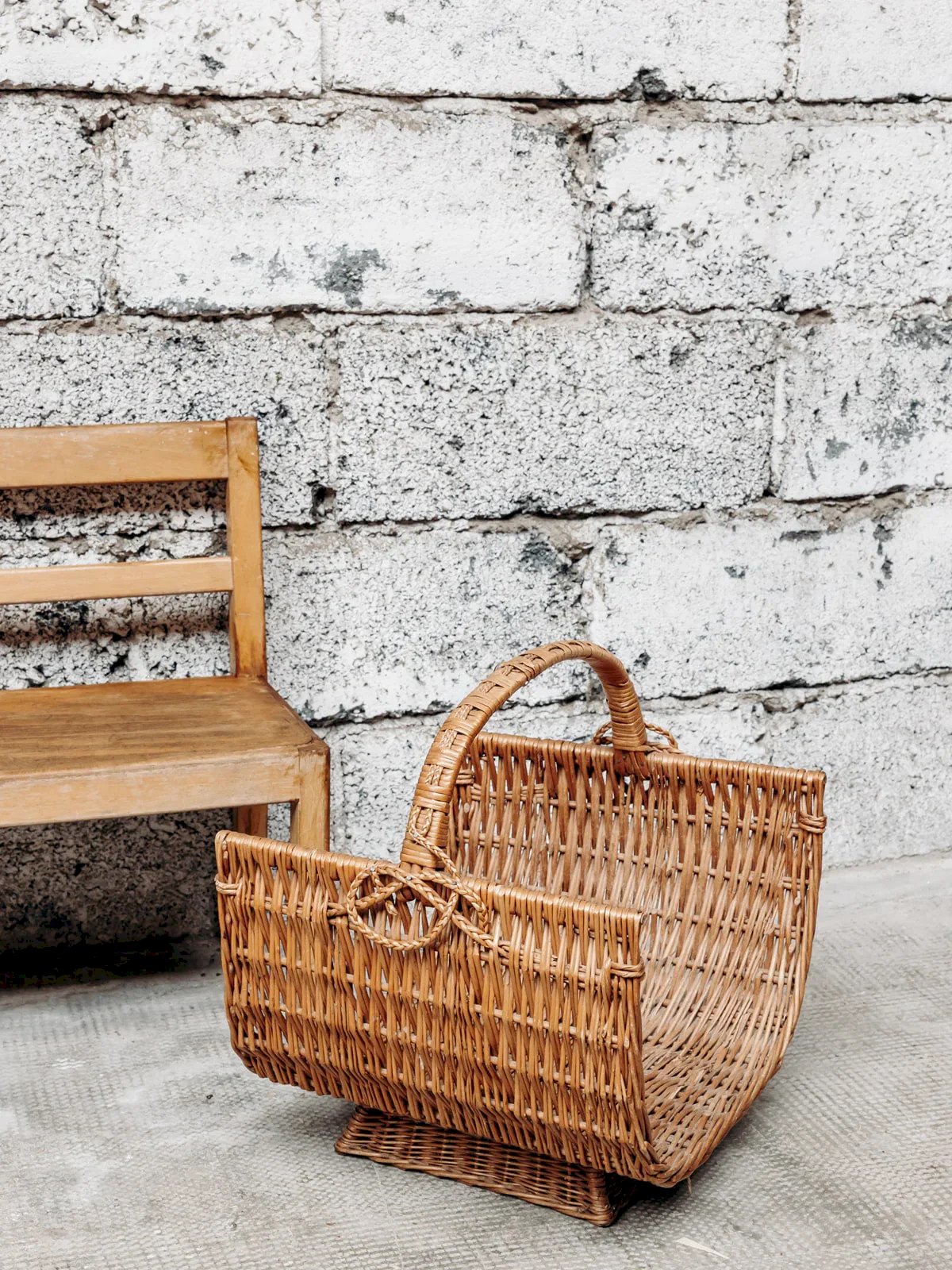 Discover this large wicker basket, ideal for storing your logs. With its high handle, it provides an easy and practical grip for transporting wood. Its robust and natural design will add an authentic touch to your interior. Perfect for a fireplace or an outdoor space, this basket combines utility and charm. A timeless accessory for organizing your logs while adding character to your decor. Length: 40 cm Height: 42 cm Depth: 38 cm Condition: Used: Item that has been used. Item showing some superficial signs of wear, fully operational and functioning correctly. It may be a demonstration model or a product returned to the store after a short period of use, with possible imperfections. Brand: Debongout Type: Thrifted product Material: Wicker Style: Country