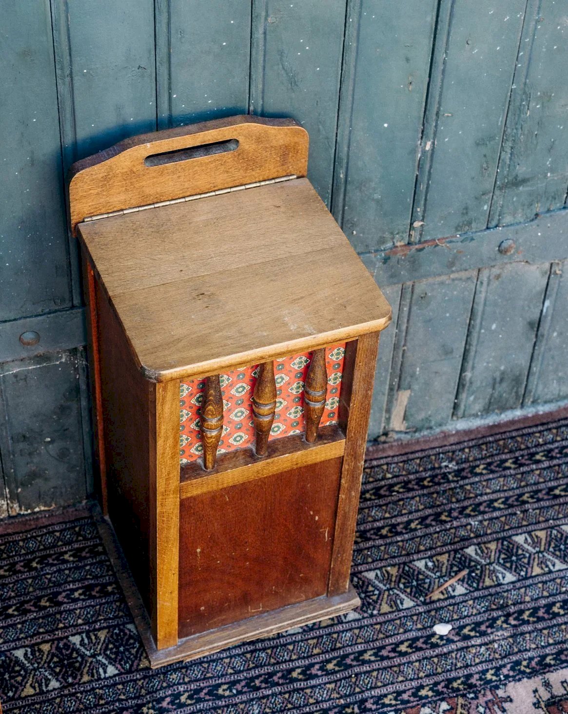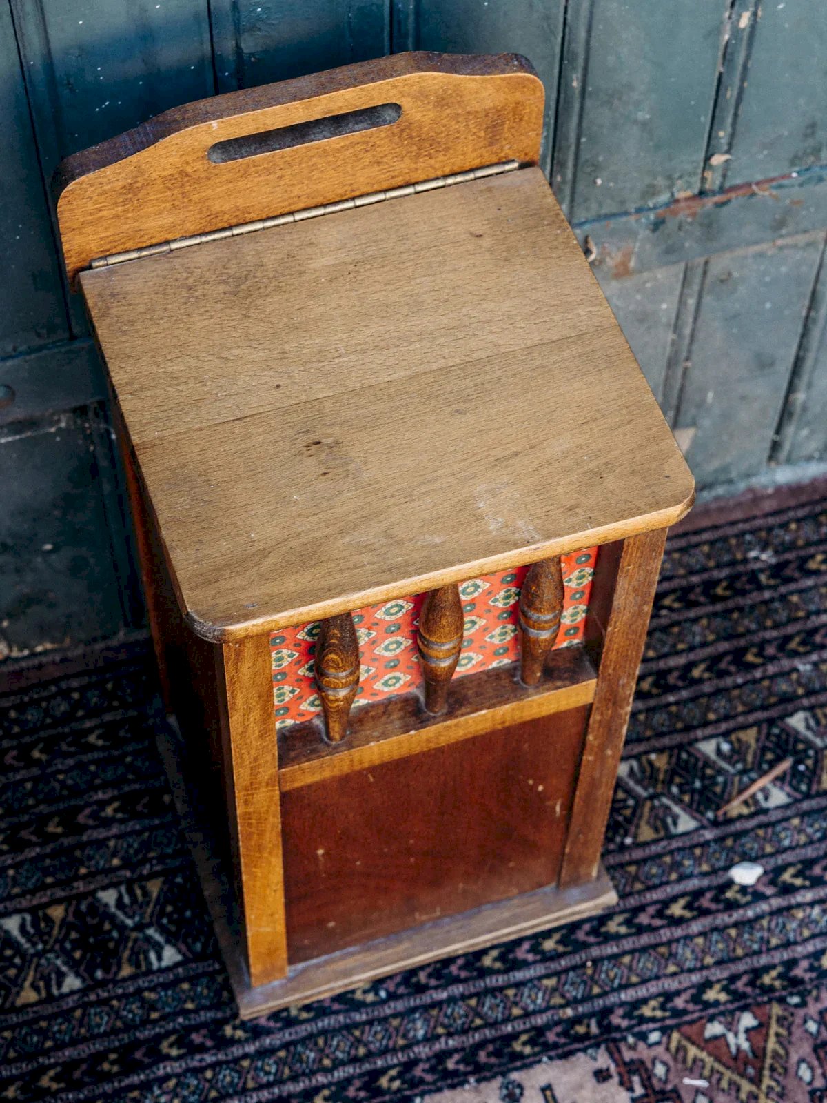Discover the charming wooden and fabric bread storage box, combining practicality and aesthetics. Its elegant design seamlessly fits into your kitchen while providing a clever nook to store your bread. The slatted details add a touch of refinement, while the patterned fabric gives it a contemporary style. A must-have for combining organization and charm in your daily life! Length: 23 cm Height: 50 cm Depth: 23.5 cm Condition: Used: Item has been used. Item shows some superficial wear, fully operational and functioning correctly. It may be a demonstration model or an item returned to the store after a short period of use, with possible imperfections. Brand: Debongout Type: Thrifted product Material: Wood Style: Country.