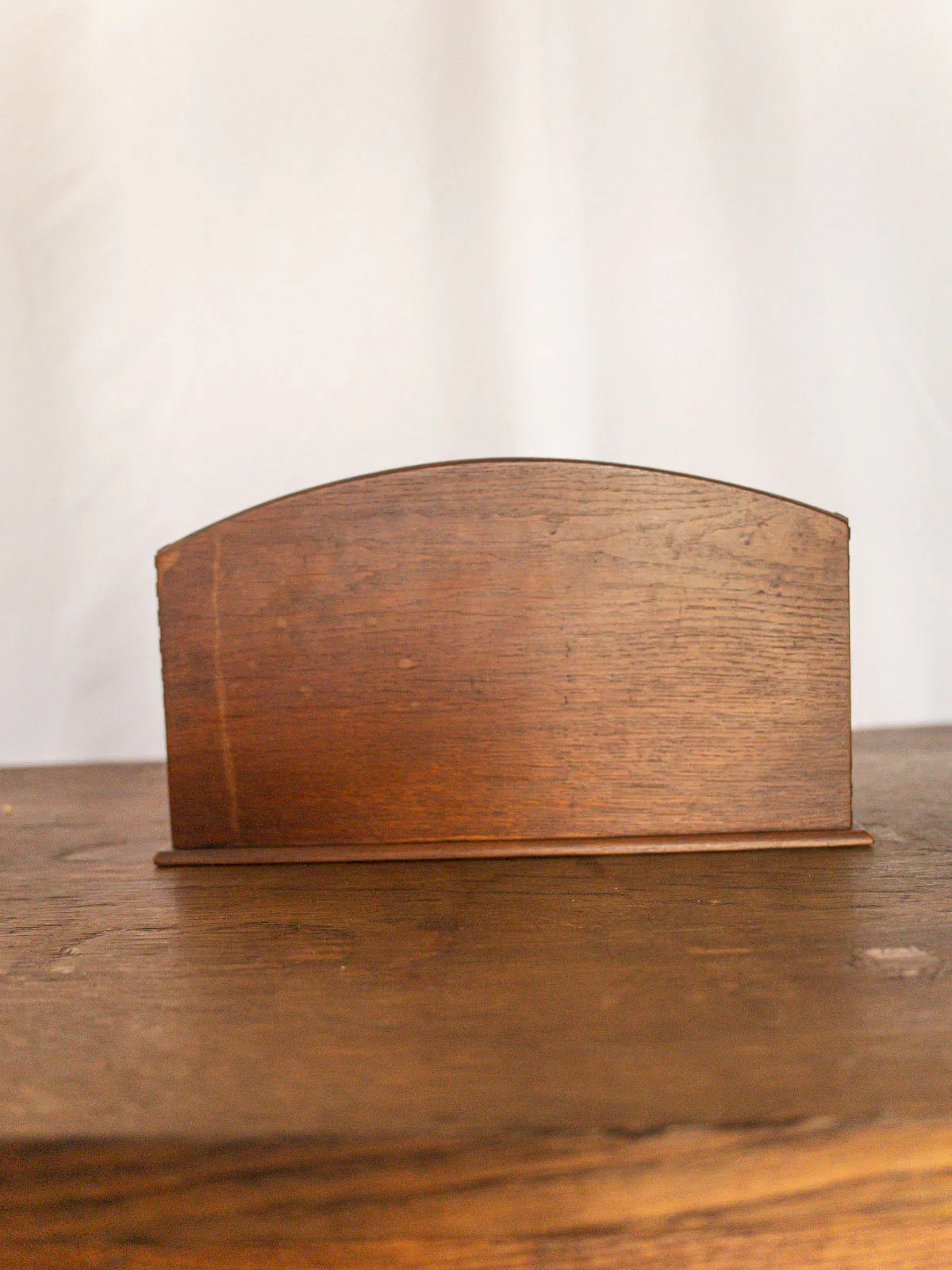 Discover this dark wood mail organizer, with simple lines and well-considered proportions, that fits naturally on a desk, console, or entryway. Its four compartments provide clear organization for letters, papers, and small documents, while the warm patina of the wood and the matte texture create a refined and welcoming atmosphere in your home. Slight signs of wear are present. Length: 33 cm Width: 15.5 cm Height: 16.5 cm Condition: Used: Item that has been used. The item shows some superficial wear marks, ...Used: Item that has been used. The item shows some superficial wear marks, fully operational and functioning correctly. It may be a demonstration model or an item returned to the store after a short period of use, with possible imperfections. Brand: Debongout Type: Thrifted product Material: Wood Style: Country.