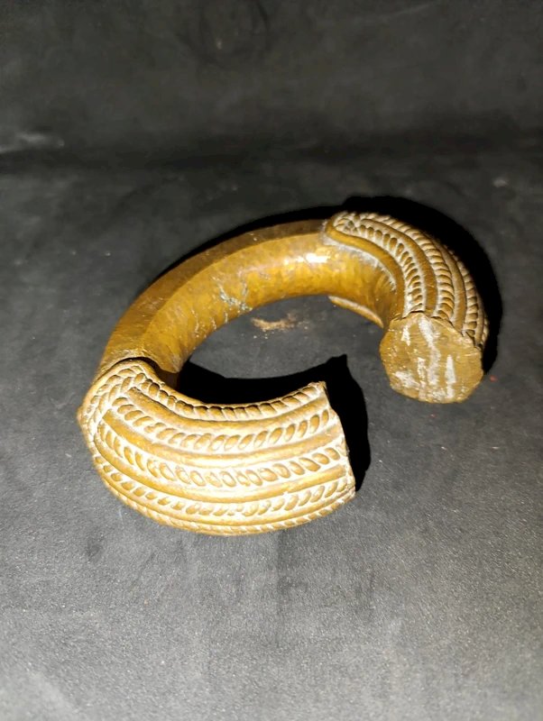 ancient African bronze bracelet known as "slave" in good condition, likely brutalist work from the mid-20th century or slightly earlier, beautifully decorated, dimensions 13x10.5, height 3.5cm