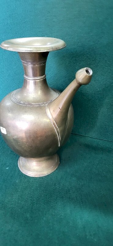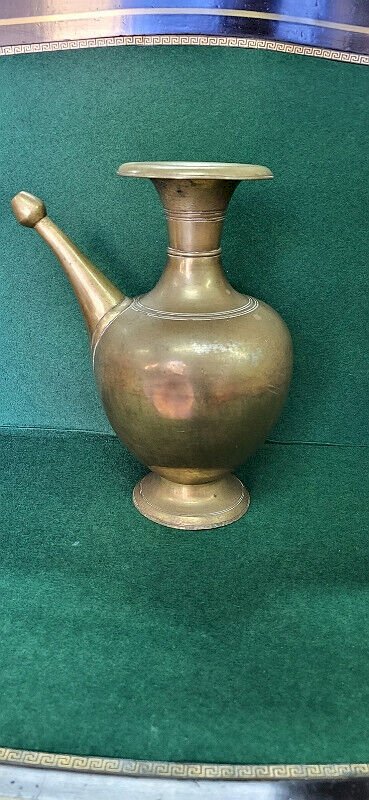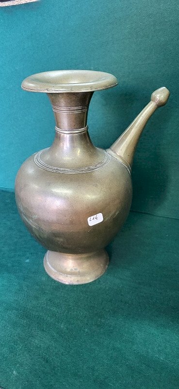 Nice and antique bronze pitcher, it is in good condition with just a few small dents on the body. It is a very beautiful piece measuring 27.5 cm high, 21 cm wide, and 15 cm deep. Type: Tableware, Kitchen Subtype: PITCHER Material: Bronze