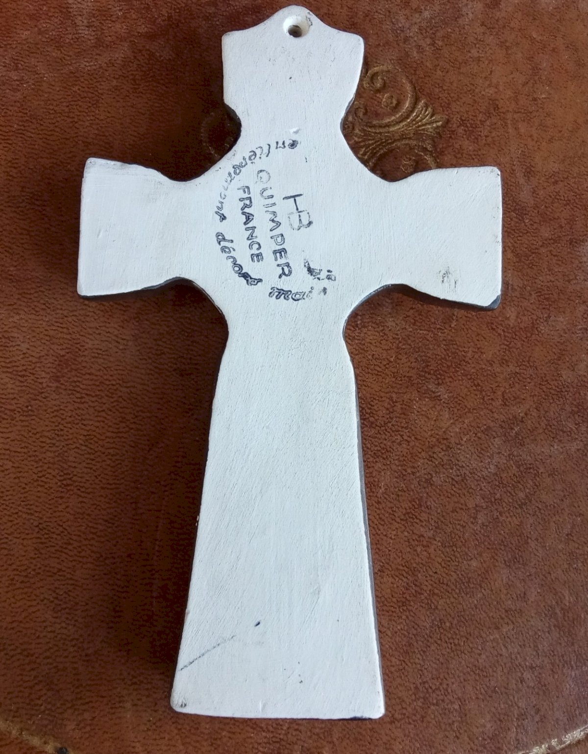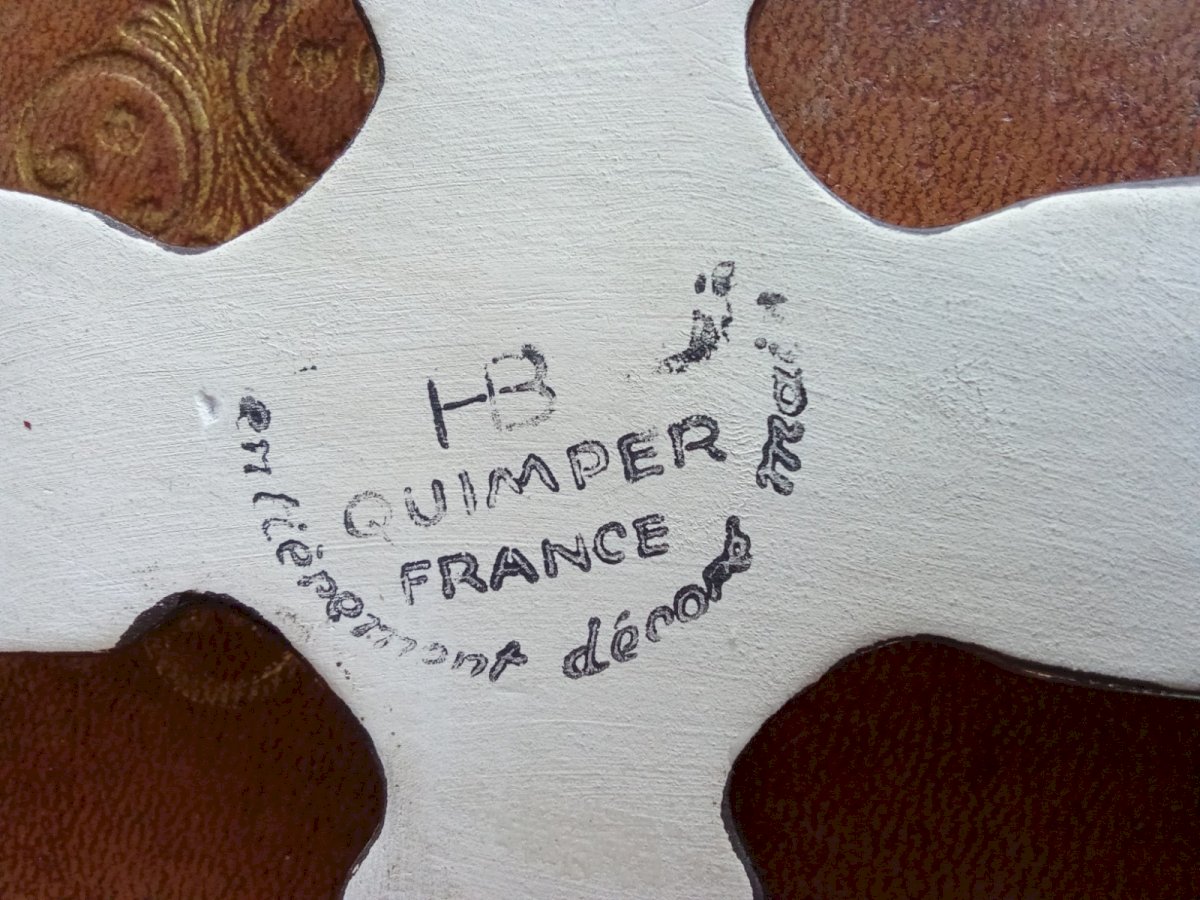 Old Celtic Cross HB Quimper Brittany Beautiful Hand-Painted Decor Beautiful Devotional Object. Nice condition Dimensions 18.2 cm x 11 cm Origin: Quimper