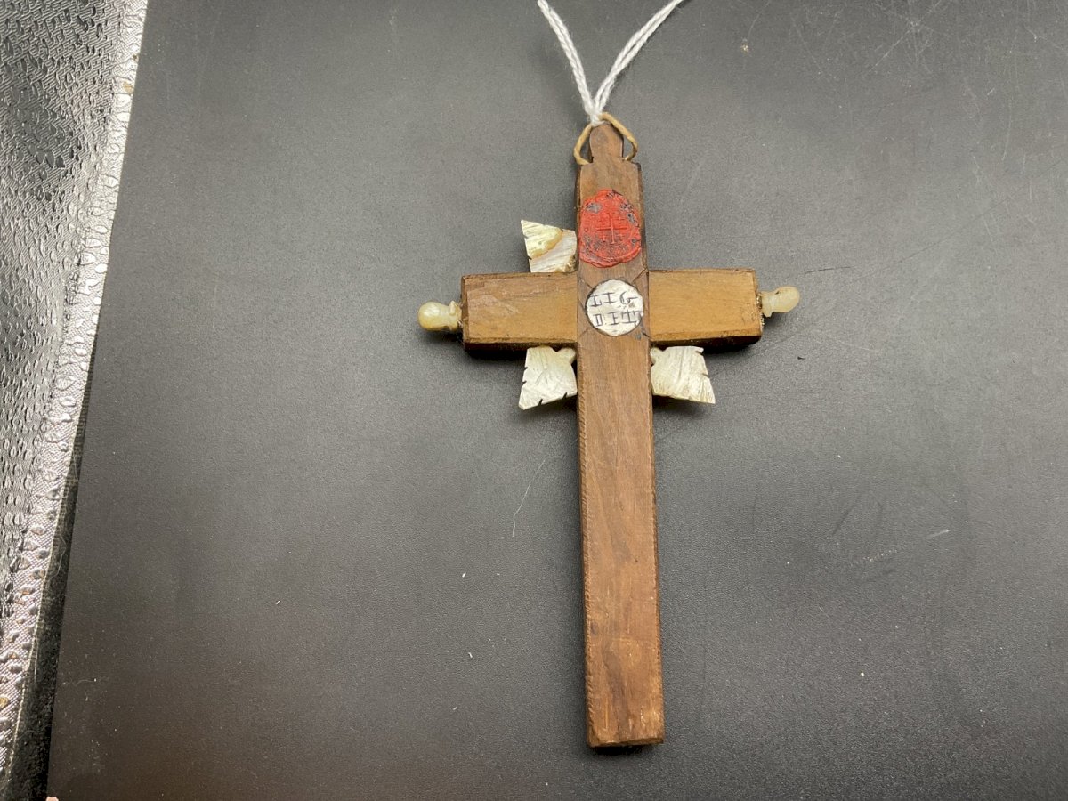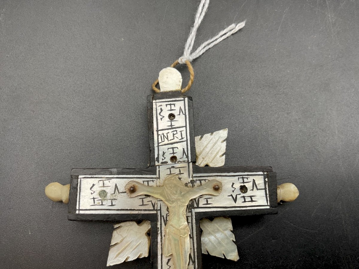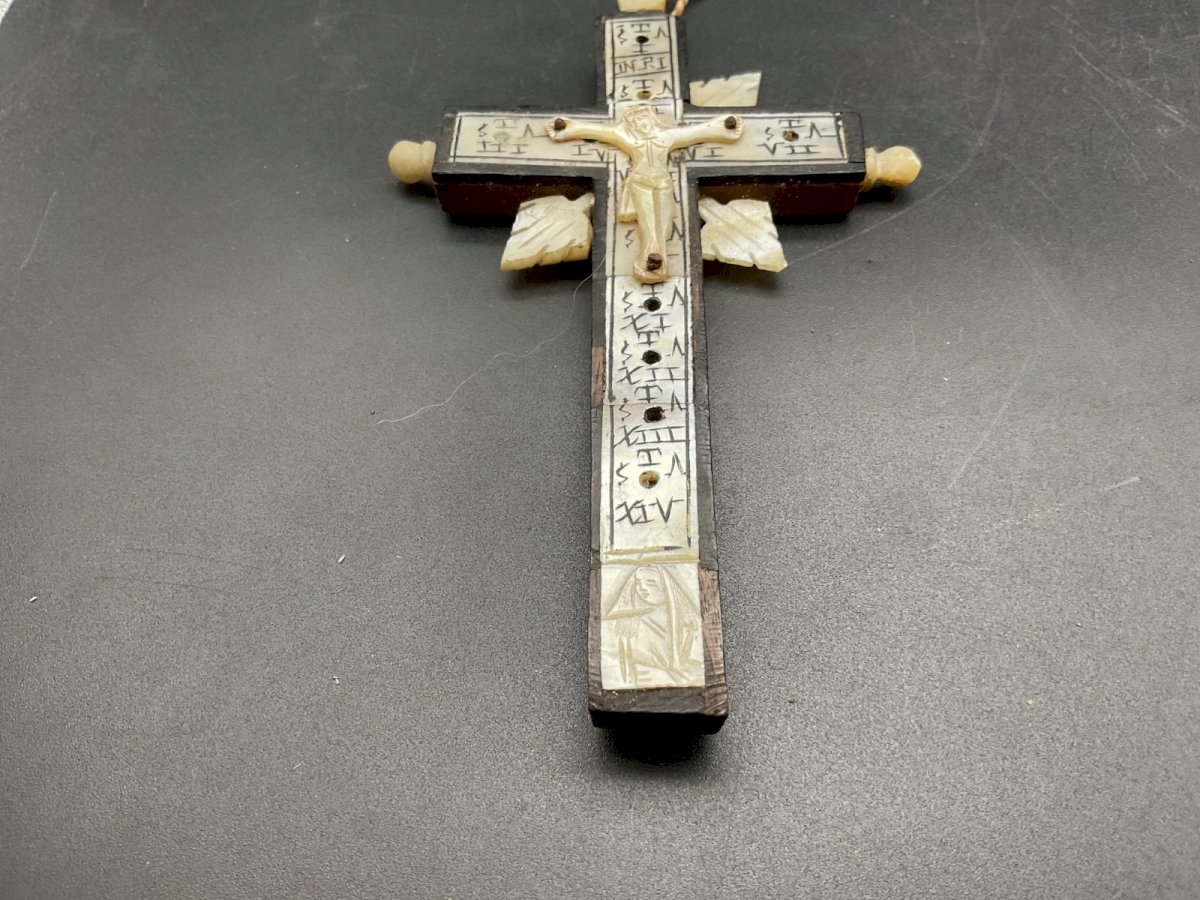 Antique Crucifix Reliquary Holy Land Wood and Mother of Pearl Stations of the Cross 19th century Dimensions: 12.5 x 8 cm Condition: Used item. Please consult the seller's description for more details... Used item. Any possible imperfections. Type: Christianity Country of manufacture: France Sub-type: Reliquary Material: Wood