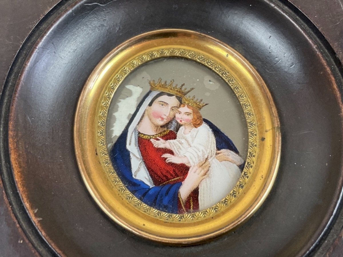 ANTIQUE FIXED UNDER GLASS ROYALIST MINIATURE PAINTING Attention, damaged painting Dimension: 9.2 x 8.5 cm Authenticity: Original Type: Display item, Decorative Origin: France Subtype: Frame Material: Glass Style: Napoleon III