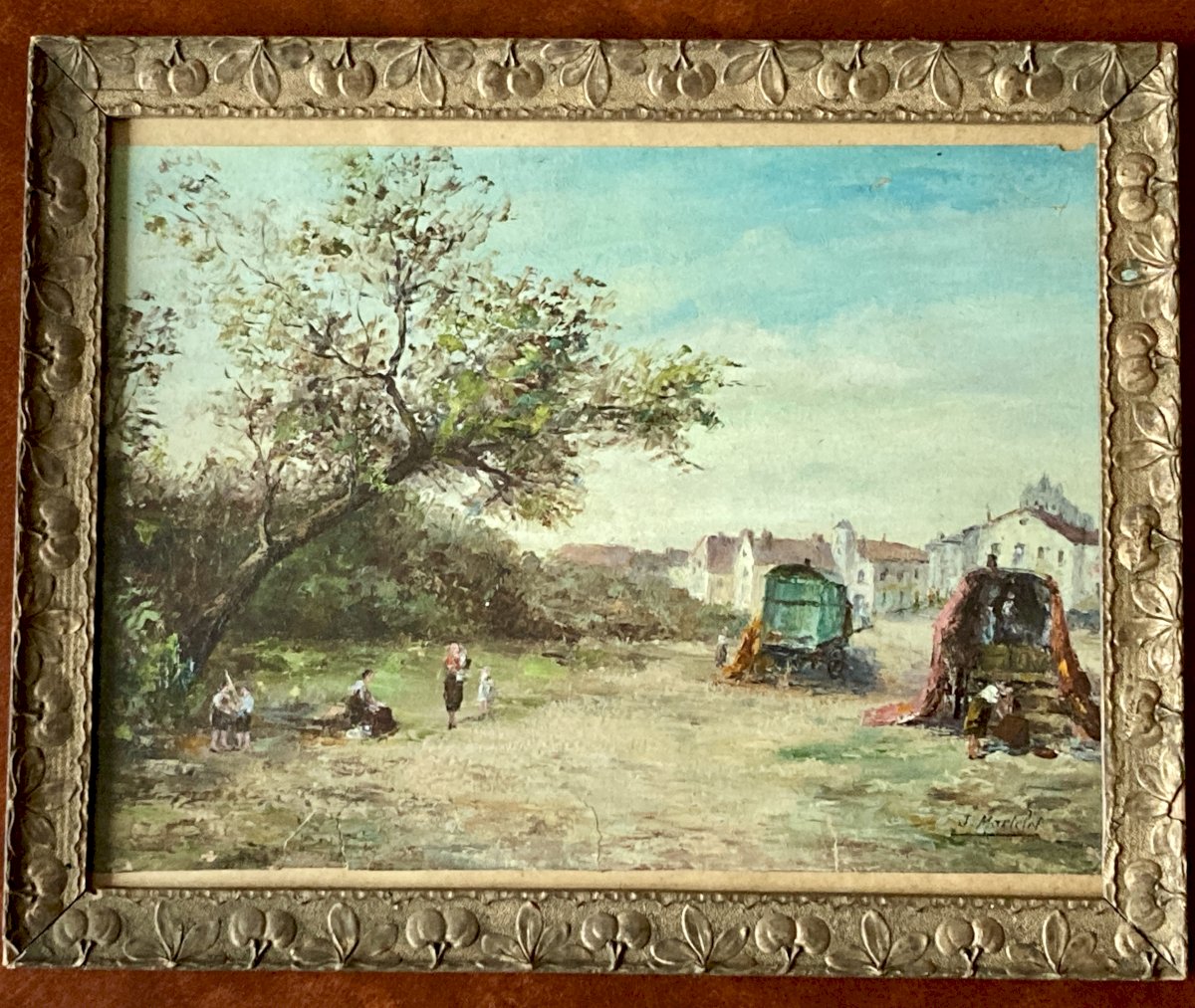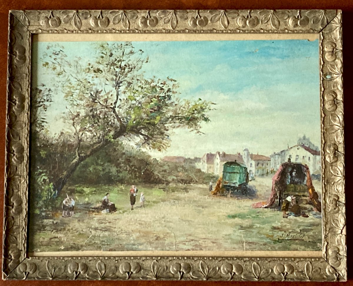 Old painting, oil on fine cardboard: The caravans at Saintes Maries de la Mer signed J Martelet. Well framed 35 x 28, under glass. Careful shipping guaranteed.