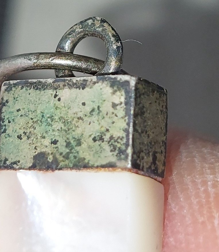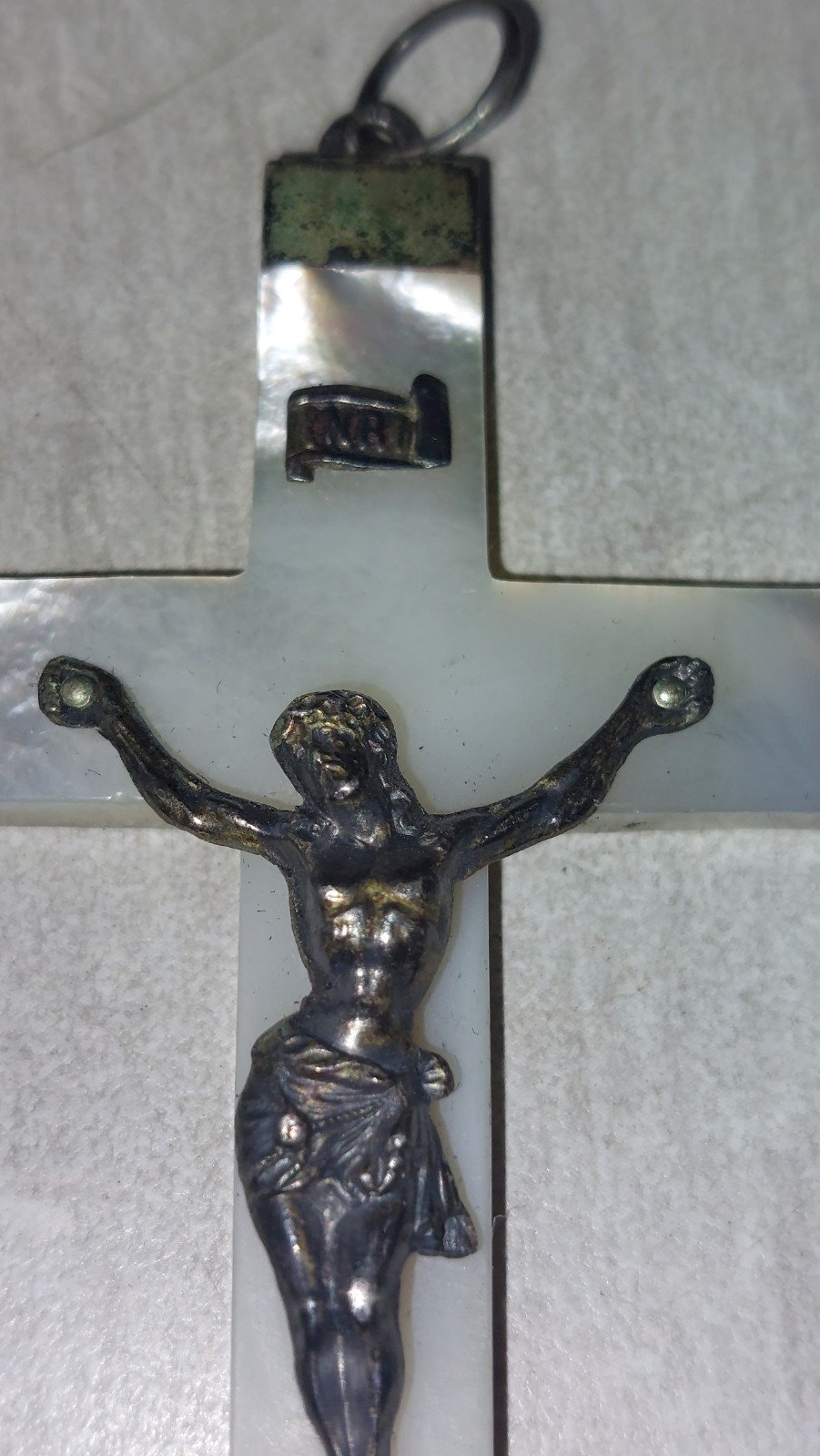 Old pendant / cross / crucifix, made of mother of pearl and silver in good condition, a hallmark on the clasp, dimensions 7.5 cm x 4.3 cm, total weight 12 g, see photos. Check my other items! Reduced shipping costs for bulk purchases. Condition: Used. Item has been used, possible imperfections. Type: Christianity Subtype: Medal, Pendant Material: Silver
