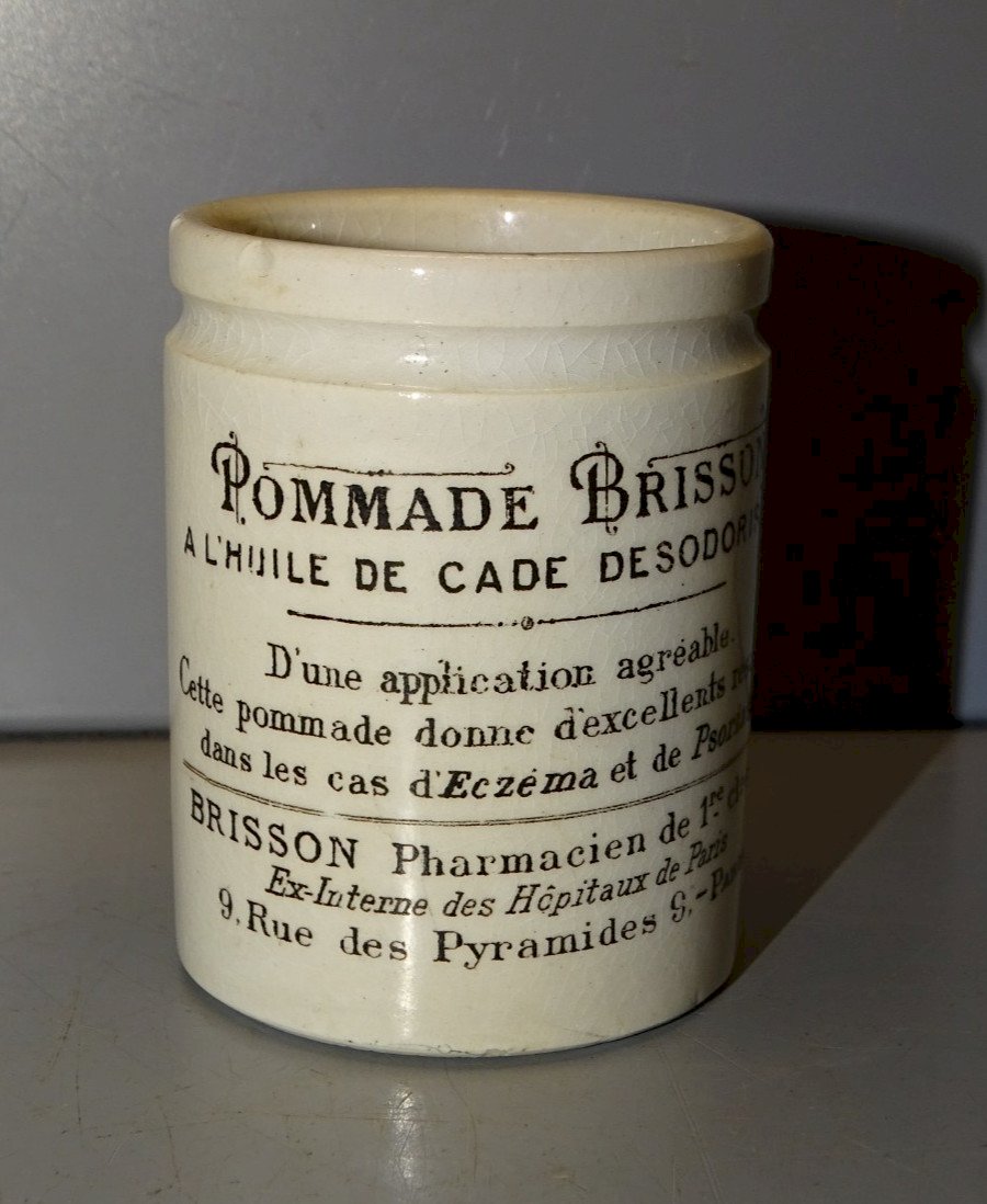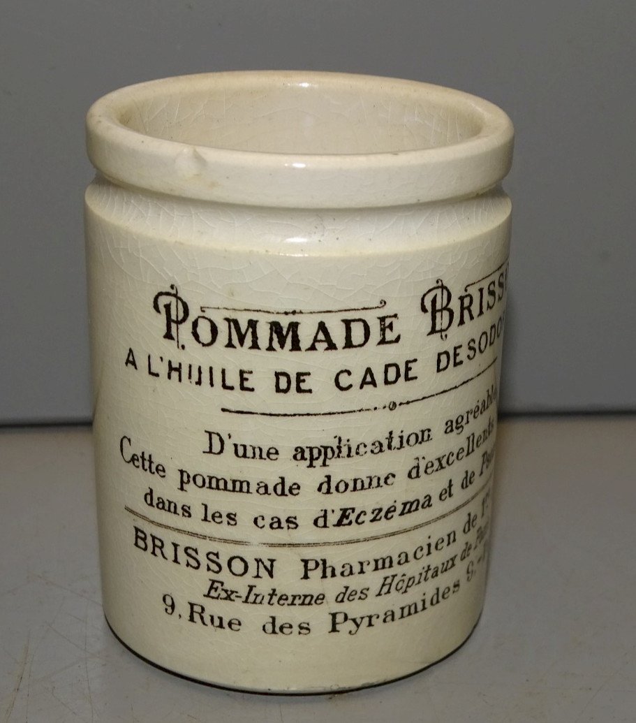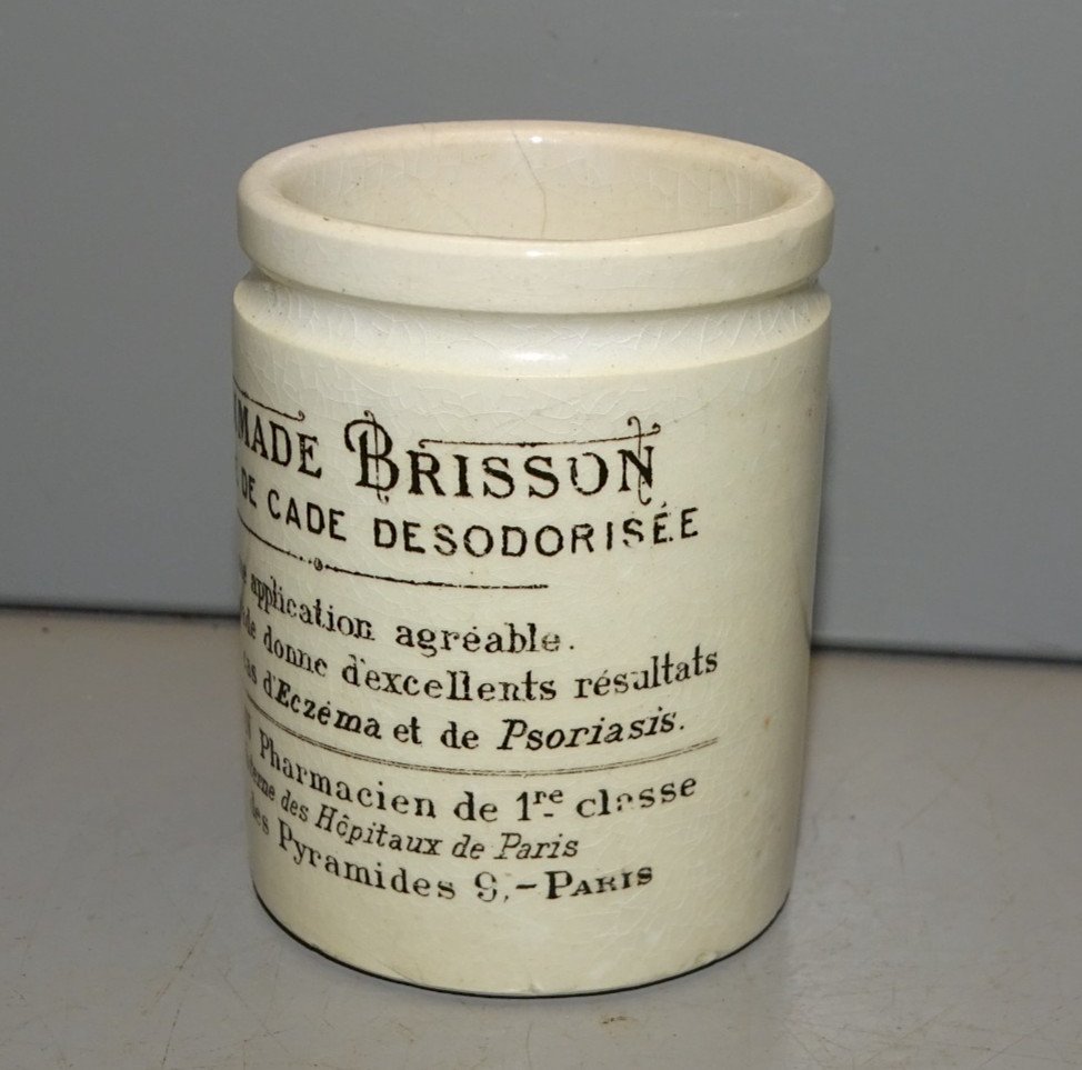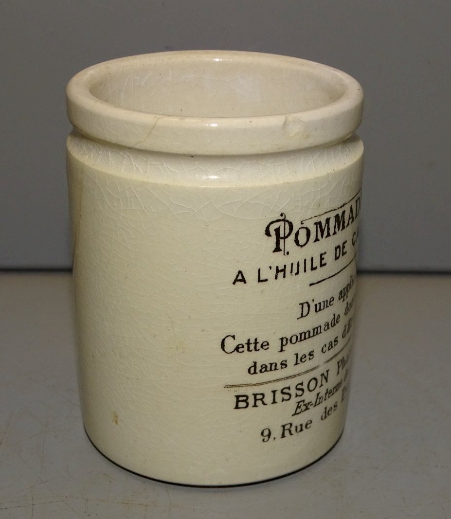 old small Brisson pomade pot with deodorized cade oil - a small chip on the edge and a hairline crack noted in the photos (see photos) - treasure find - taken from an attic - Ref. 1V240718/319 Height 5.6 cm - Diameter 4.4 cm - Weight 70 g - SHIPPING POSSIBLE VIA MONDIAL RELAY or COLISSIMO upon request VERY GOOD PACKAGING GUARANTEED PLEASE TAKE A GOOD LOOK AT ALL THE PHOTOS as THEY ARE AN INTEGRAL PART of the DESCRIPTION and ALLOW YOU TO SEE the ITEM AT ITS BEST with ITS POSSIBLE SMALL DEFECTS - Condition: Used: Item that has been used. Please consult the seller's description for more details... Used: Item that has been used. the possible imperfections.