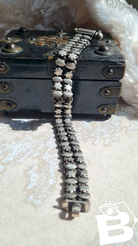 above 25€, please choose a carrier if possible take the opportunity to buy in bulk: - 5 items - 10% - 10 items - 20% - 20 items -30% carefully look at the photos to see imperfections length: 18.2 cm clasp width: 2.5 cm width: 1.2 cm weight: 35 grs#bracelet#silver#chic#gift#vintage#Rajasthan#ethnic