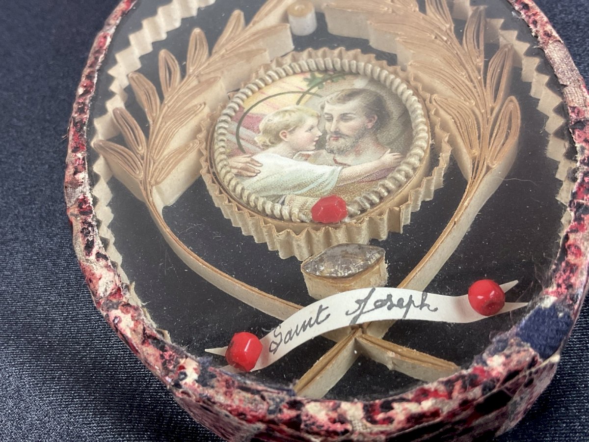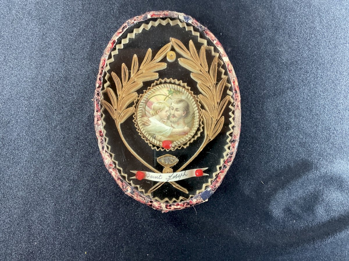 Antique Reliquary FRAME relic SAINT JOSEPH Dimensions: 11 x 8 cm Condition: Used item. Please consult the seller's description for more details... Used item. Any possible imperfections. Type: Christianity Country of manufacture: France Sub-type: Reliquary Material: Paper, Cardboard