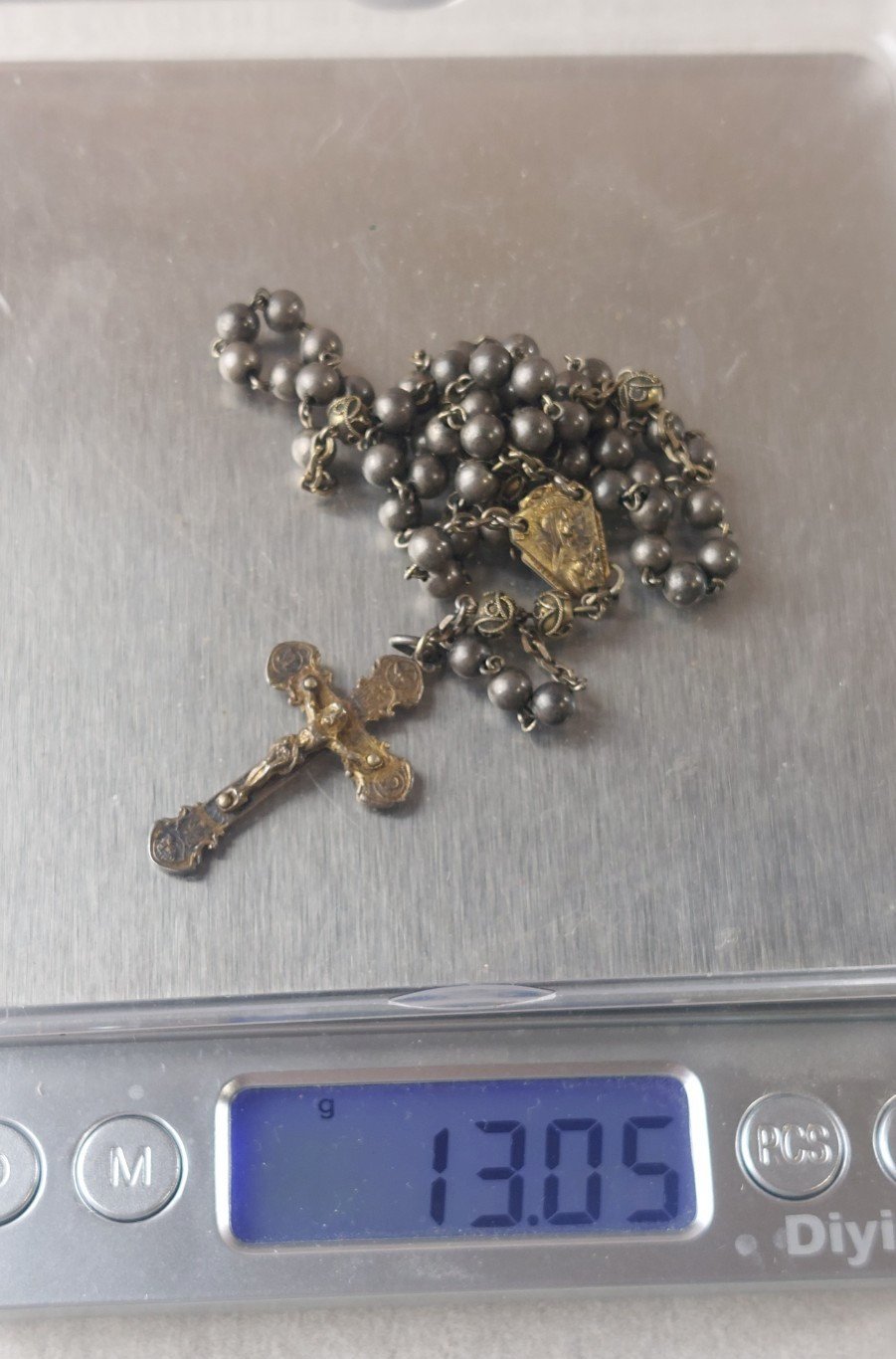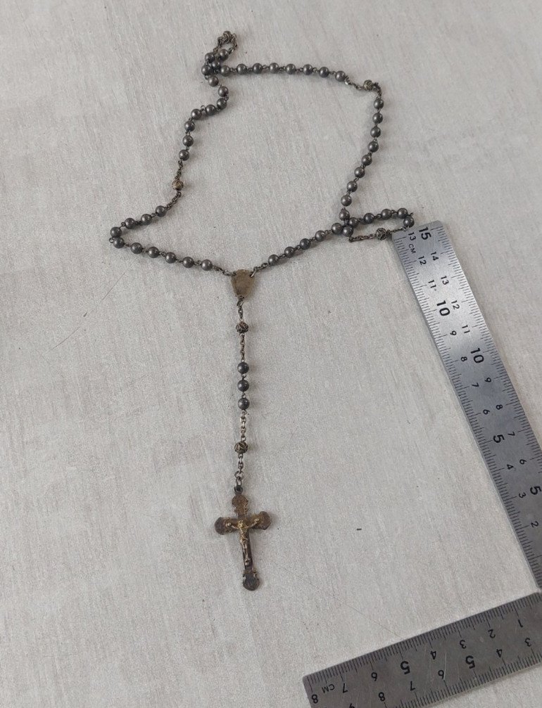 Antique silver rosary in very good condition, complete with two hallmarks, cross dimensions 3 cm x 1.9 cm, length 32.5 cm, total weight 13.05 g, see photos. Check my other items! Shipping discounts for combined purchases. Condition: Used item that has been used, possible imperfections. Type: Christianity Subtype: Rosary Material: Silver
