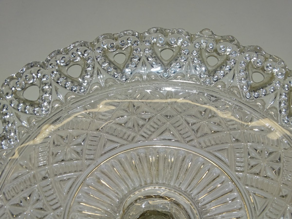 Pretty molded glass compote with a frieze of hearts on the edge - attic juice, in good used condition (see photos) - Ref. 1V240718/490 - Diameter 18.1 cm - Height 11.4 cm - Base diameter 9.2 cm - Weight 647 g - To contact me my email address: SHIPPING POSSIBLE VIA MONDIAL RELAY or COLISSIMO upon request VERY GOOD PACKAGING GUARANTEED THANK YOU for CAREFULLY LOOKING AT ALL the PHOTOS as THEY ARE AN INTEGRAL PART of the DESCRIPTION and ALLOW YOU to SEE the ITEM as BEST as possible with its POSSIBLE SMALL DEFECTS -