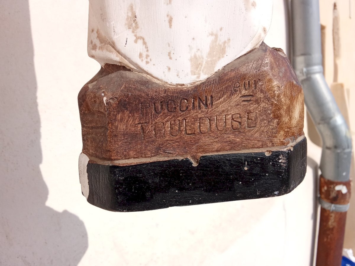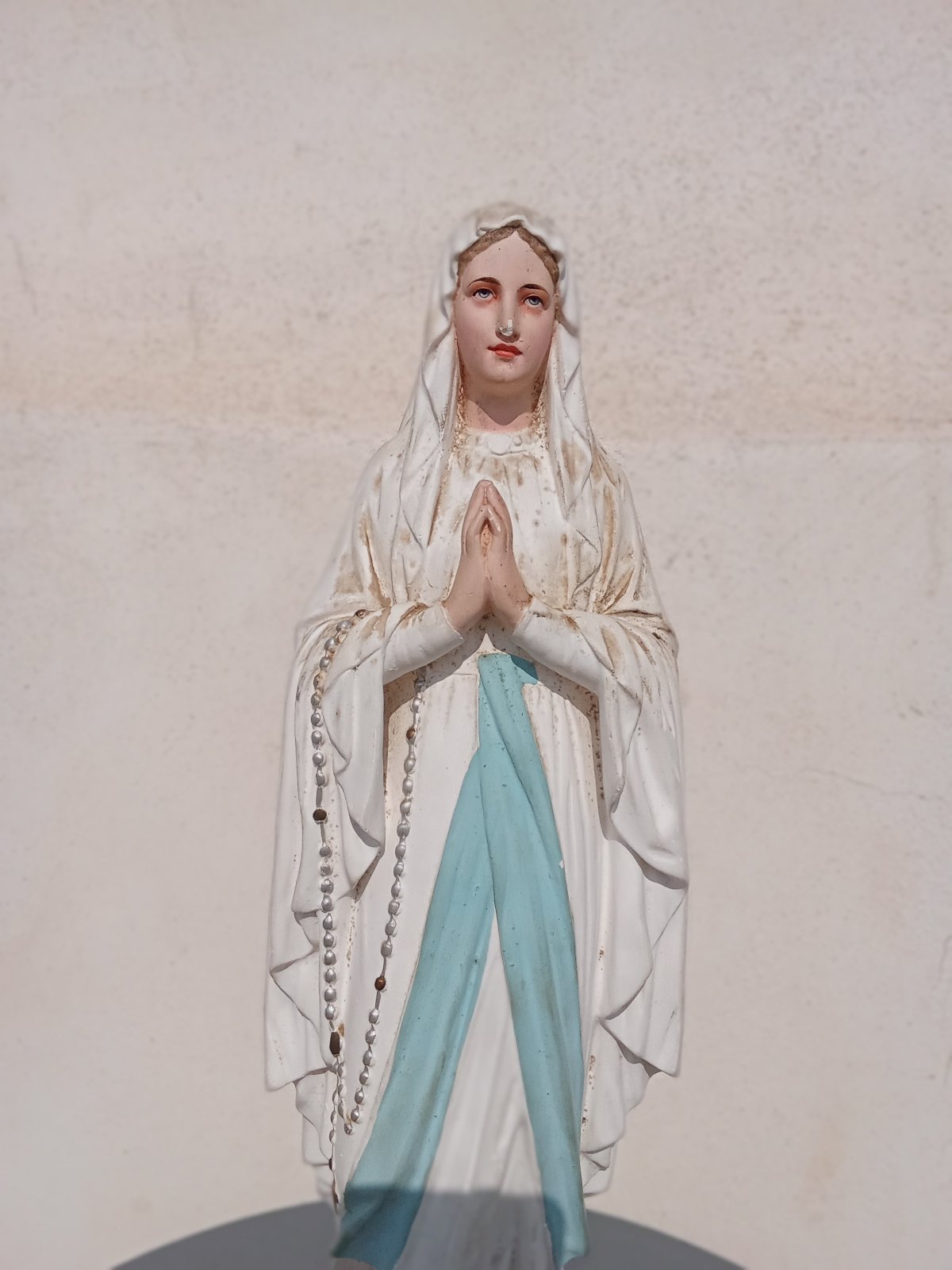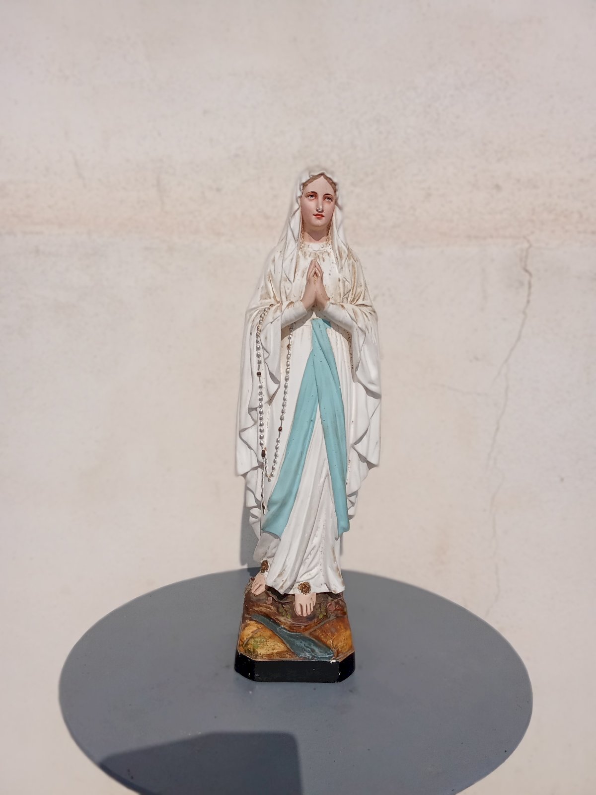 Old Virgin Mary plaster statue signed GALY Toulouse circa 1920