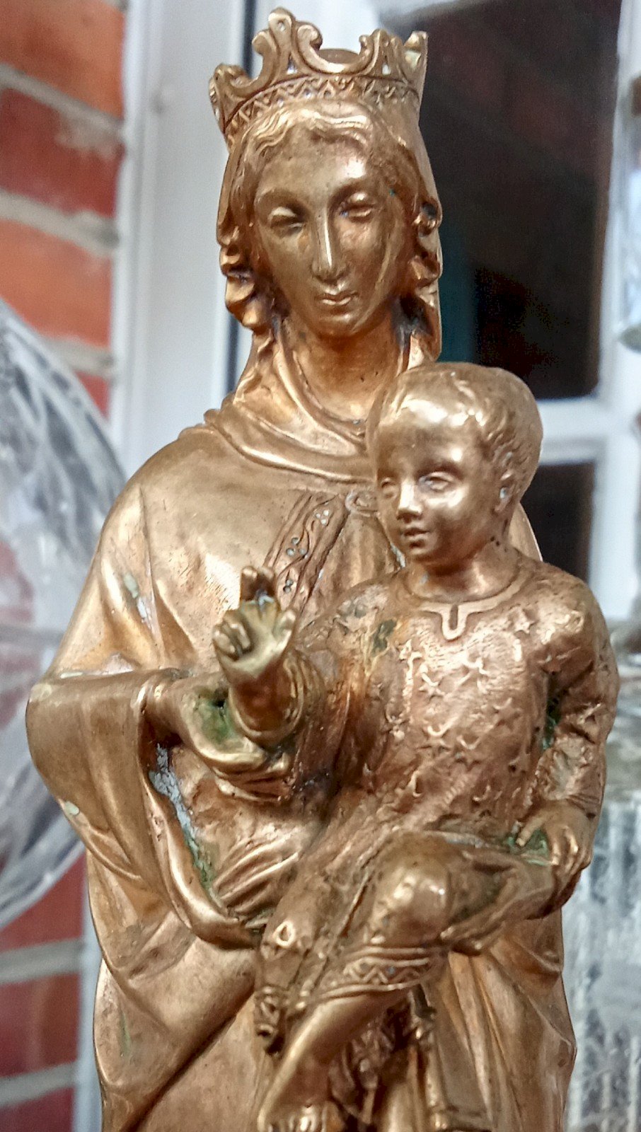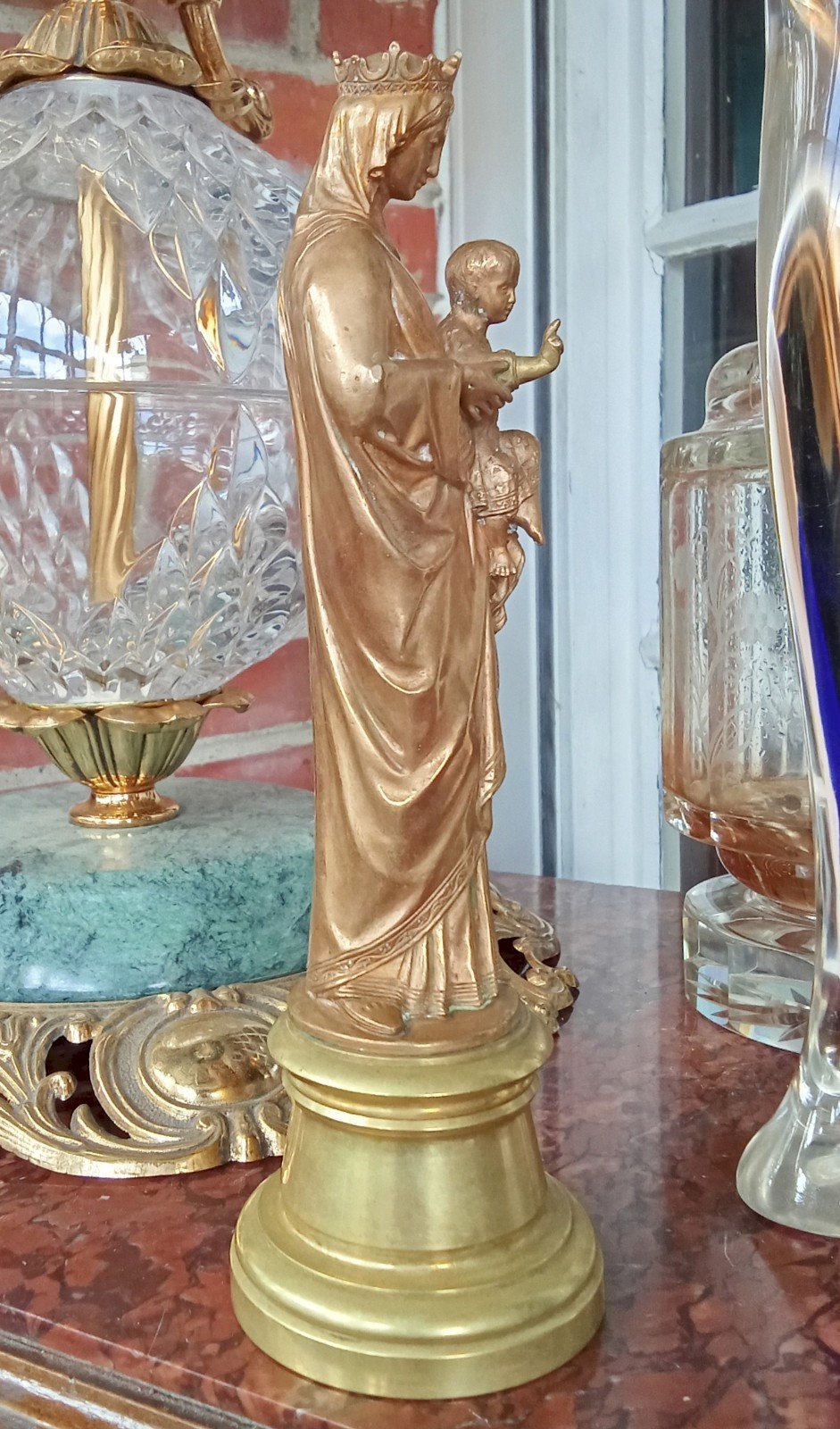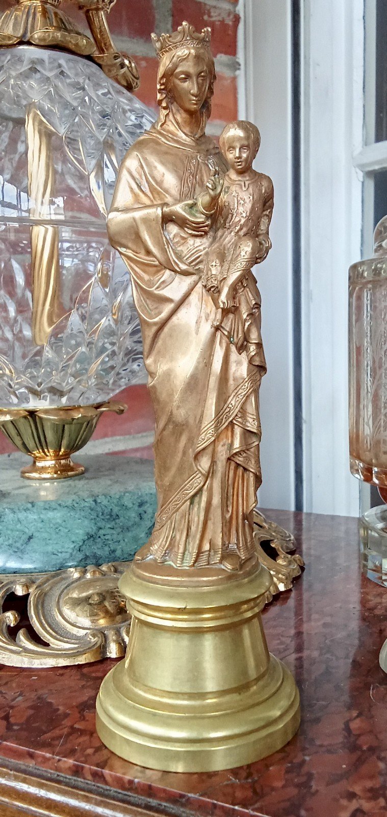 Antique Gilded Bronze Statue of the Virgin Mary with Child Dating from the 19th Century Very Beautiful Object of Devotion. The details are superb. Height 21 cm Base Diameter 6.7 cm Condition: Used: An item that has been used. Please check the seller's description for more details ... Used: An item that has been used. any possible imperfections. Subtype: Statue Material: Bronze