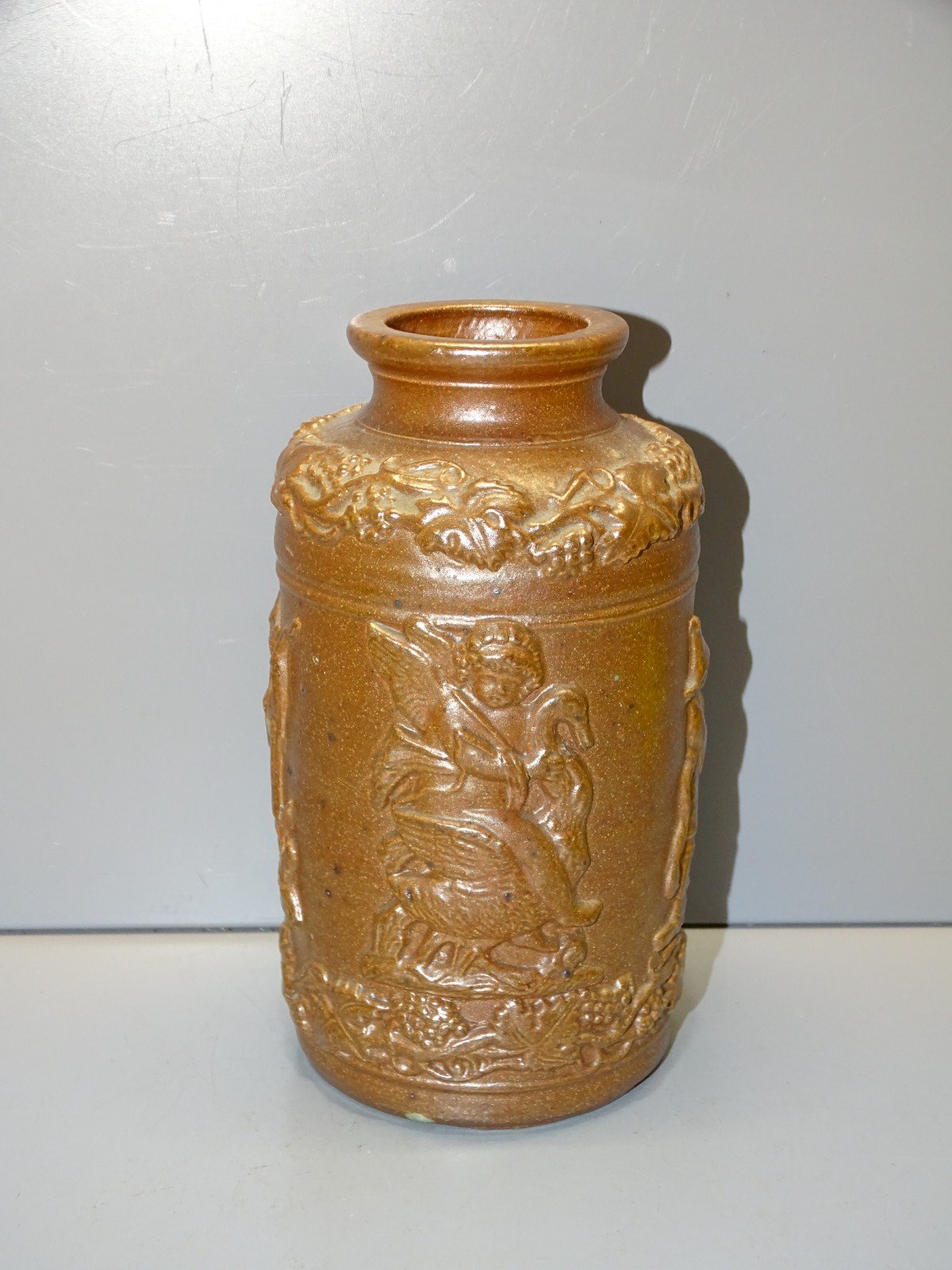 Nice old stoneware tobacco jar from Beauvaisis with a very nice patina - missing its lid (see photos) - found in a attic, in good condition (see photos) - Ref. 42240725/34 - Height 15.7 cm - Neck diameter 5.4 cm - Maximum diameter 9.4 cm - Weight 0.445 kg - To contact me, my email address: SHIPPING via Mondial Relay OR Colissimo possible upon request - GUARANTEED very protective PACKAGING - PLEASE LOOK AT ALL the PHOTOS carefully as THEY ARE AN INTEGRAL PART of the DESCRIPTION and ALLOW you to SEE the ITEM BEST - Country of manufacture: France
