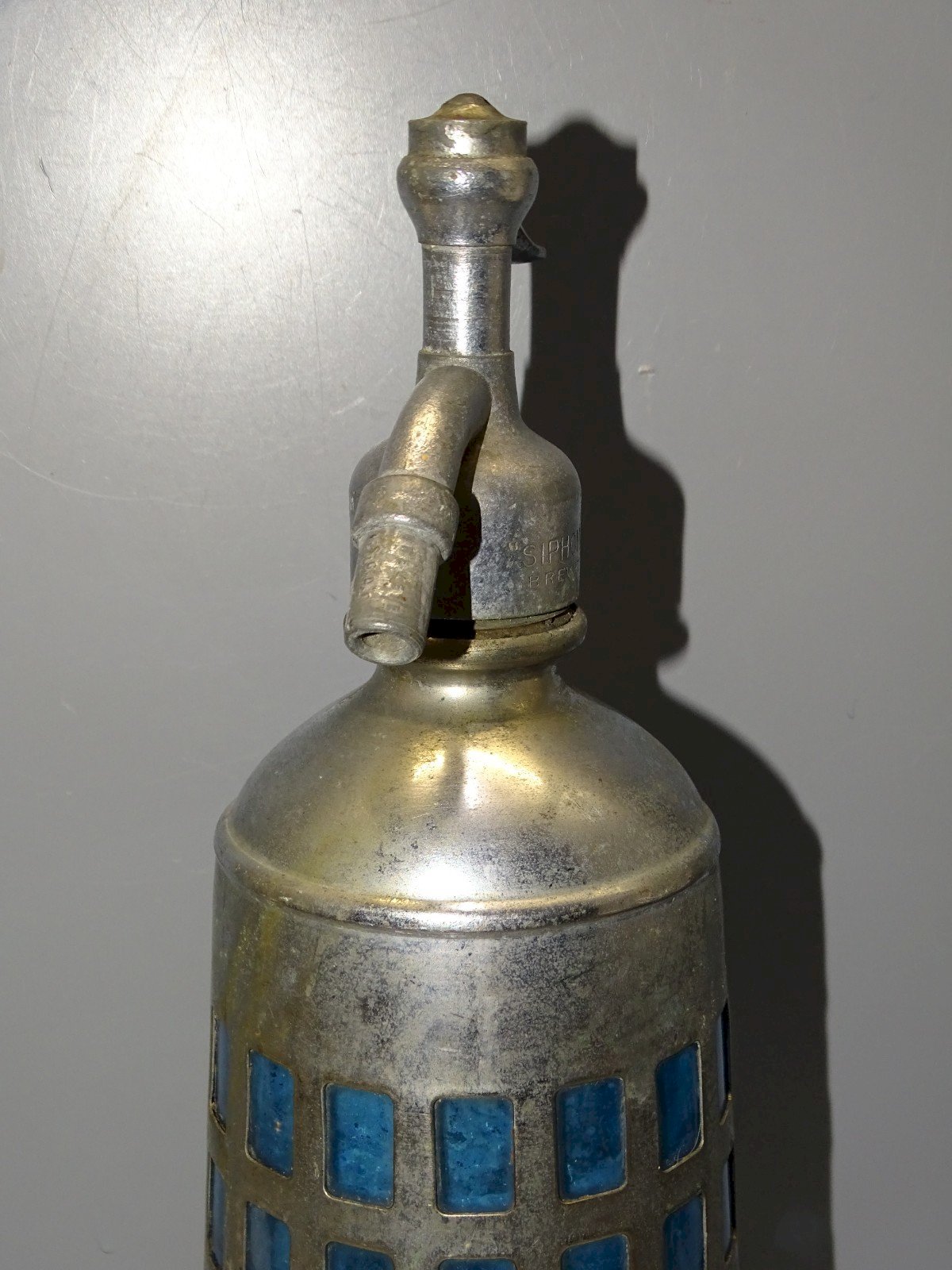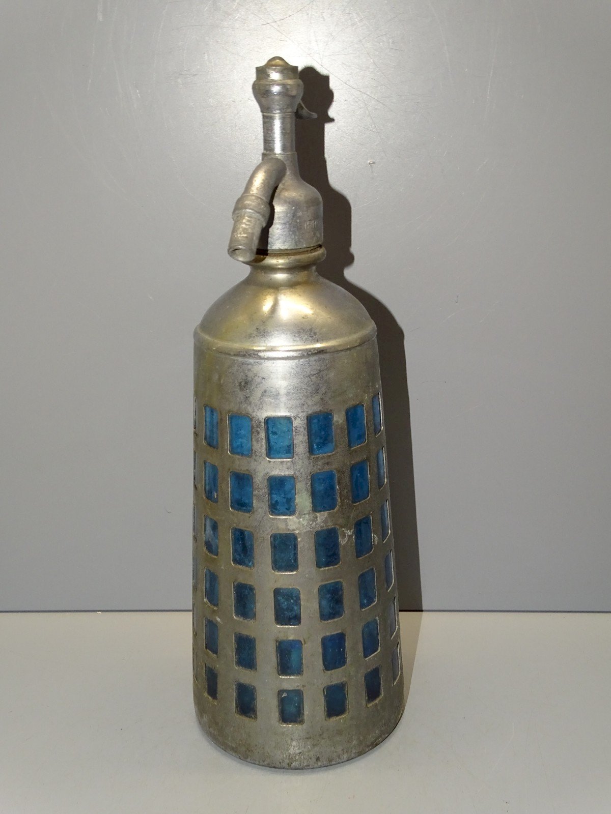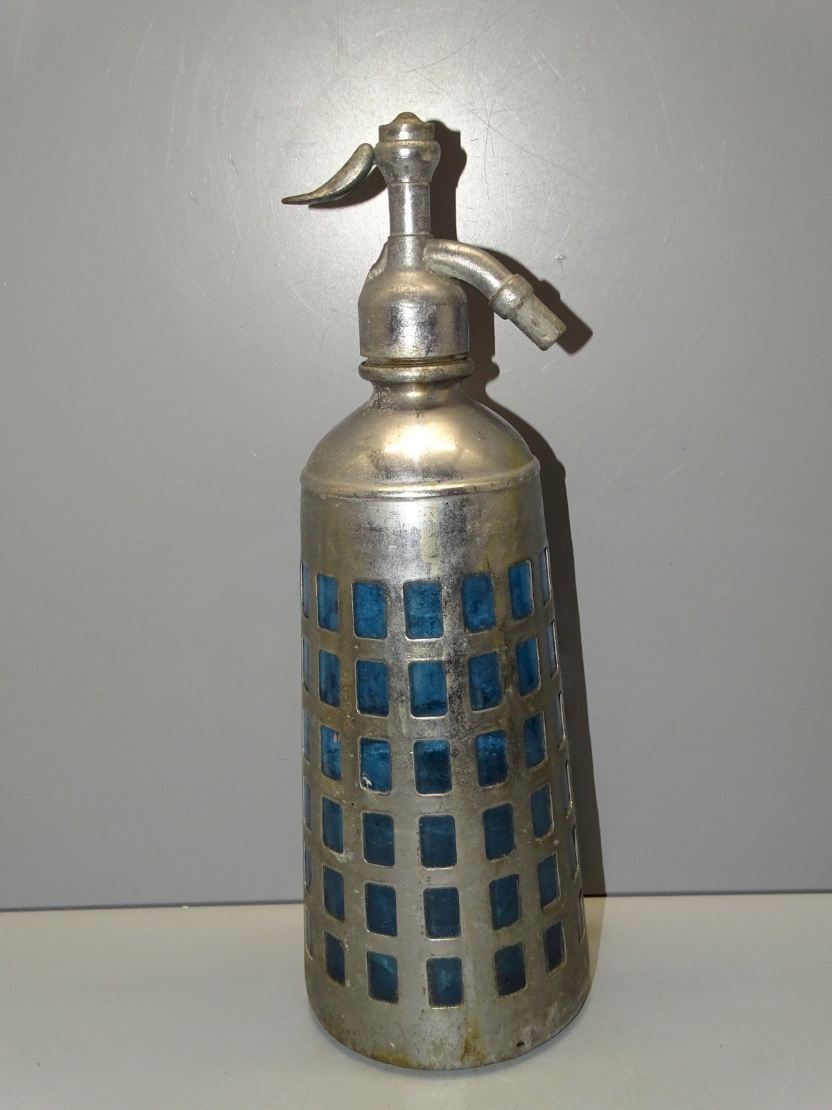 Old thick glass blue siphon cage with metal cage and metal straw - Engraved head Siphonia Paris - needs cleaning, interior limescale (see photos) - in used condition, attic juice - Ref.: 1V230712/635 - Height 33 cm - Bottom diameter 11.3 cm - Weight 2.074 kg SHIPPING POSSIBLE VIA MONDIAL RELAY or COLISSIMO upon request VERY GOOD PACKAGING GUARANTEED PLEASE TAKE A GOOD LOOK AT ALL THE PHOTOS as THEY ARE AN INTEGRAL PART of the DESCRIPTION and ALLOW YOU TO SEE the ITEM BEST with ITS POSSIBLE SMALL DEFECTS - Condition: Used: Item that has been used. Please consult the seller's description for more details... Used: Item that has been used. and any possible imperfections. Number of pieces: 1 Type: Siphons Brand: Siphonia Paris Country of origin: France Material: Glass and Metal Cage