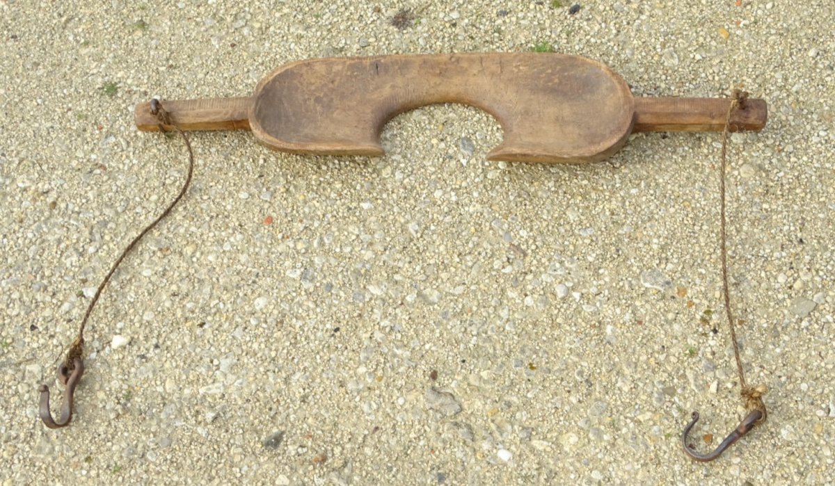 Ancient tool Ancient wooden water carrier's yoke with strings and at the end 2 superb forged iron hooks - presence of holes (see photos) - as found, out of the barn, in very good usable condition - Ref.42141025/19 - Length 81 cm - width 16.2 cm - Length of strings and hooks 51 cm - Weight 1.2 kg - SHIPPING via Mondial Relay OR Colissimo available upon request - GUARANTEED very protective PACKAGING - PLEASE LOOK CLOSELY at ALL the PHOTOS as THEY ARE AN INTEGRAL PART of the DESCRIPTION and ALLOW YOU to SEE the ITEM BEST.