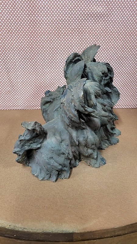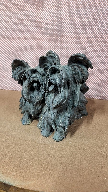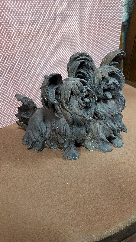 superb animal sculpture of 2 dogs in terracotta, it is in good condition but retains its original patina with a few small chips here and there, but nothing serious. It is missing a base underneath as there are 2 mounting marks. It is signed Guido Cacciapuoti 1892-1953 Italy, an Italian sculptor and ceramist. The signature is difficult to read, and all defects are visible in the photos. It measures 19.5 cm high, 20 cm deep, and 24 cm wide. Type: Statue, Sculpture Material: Terracotta Theme: Animals