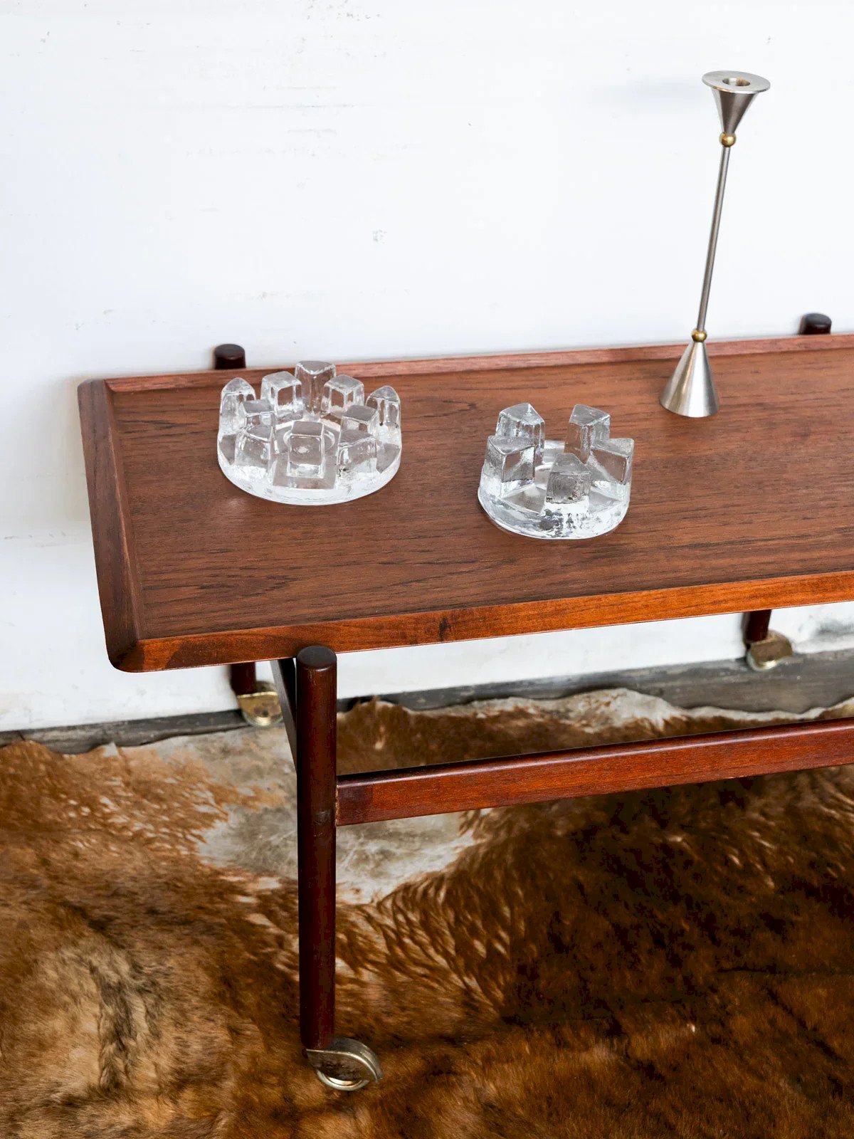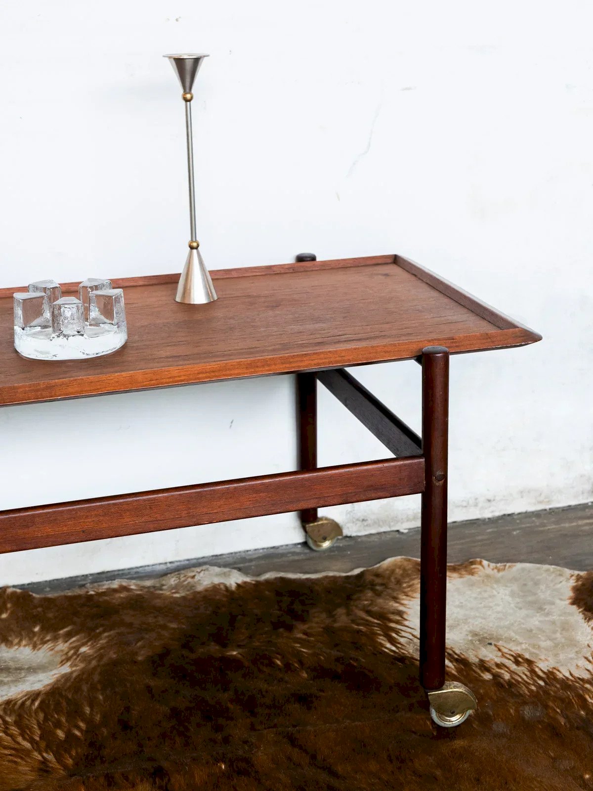 Alert nugget! Add a vintage touch to your home with this elegant rolling cart made of teak from the 70s. Practical and aesthetic, it combines the charm of warm wood with a timeless retro design. Its removable tray offers great flexibility, ideal for serving your guests or for everyday use. The discreet wheels allow for easy movement from one room to another. Whether as a mobile bar, a side table, or a decorative support, this cart adapts to all your needs. Web exclusive, the meeting will take place at your home! Length: 90 cm Width: 51 cm Height: 47 cm **A brief history of the cart** The cart, also known as a serving table, emerged in the 17th century. At that time, it was used to serve and clear dishes during meals. Equipped with wheels, it can be moved from one place to another effortlessly, allowing for quicker table clearing by reducing the number of trips between the dining room and the kitchen. Its great utility is why the cart has become an important piece of furniture, also serving tea or breakfast. This small mobile side table has managed to secure a special place in our interior over the centuries. Condition: Used: Item has been used. Item shows some superficial wear, ...Used: Item has been used. Item shows some superficial wear, fully operational and functioning correctly. It may be a demonstration model or an item returned to the store after a short period of use. potential imperfections. Brand: Debongout Type: Flea market product Material: Wood Style: Contemporary Custom: Carts