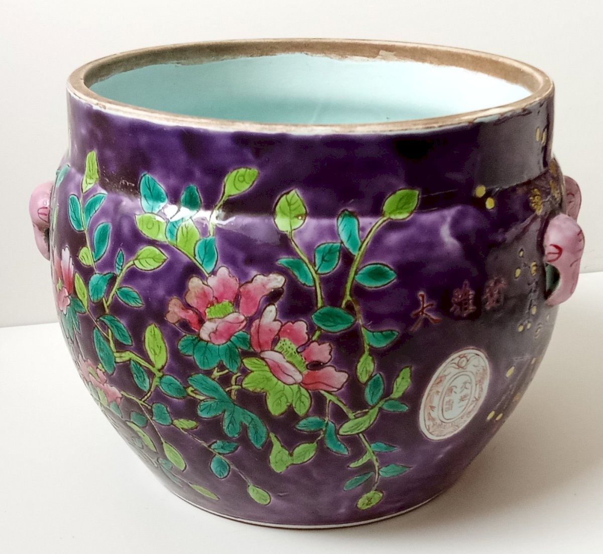 Antique Asian Cache Pot. Made of porcelain from China "Dayazhai" Qing Dynasty Late 19th century Very nice decoration Marked underneath Good condition Height 16.5 cm Opening diameter 18.3 cm