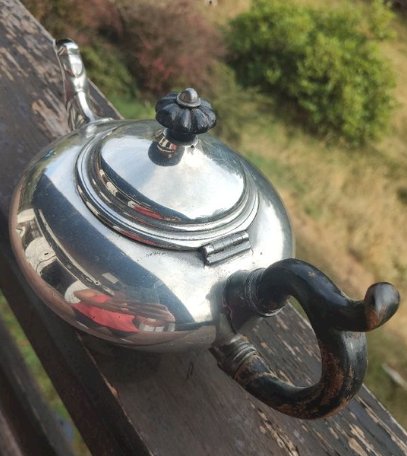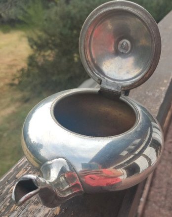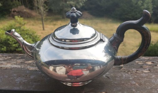 Authentic "ball" shaped teapot from the famous English manufacturer James Dixon and Sons (Sheffield). Origin: England, Victorian era (19th century). Material: "Britannia Metal" (high-quality tin alloy, typical of Sheffield silverware). Model number 1794. Overall in good condition. Very nice rounded lines with its original turned blackened wood handle and knob. Ideal for charming decor, curiosity cabinet style or for a collector of English tableware. Careful packaging guaranteed.