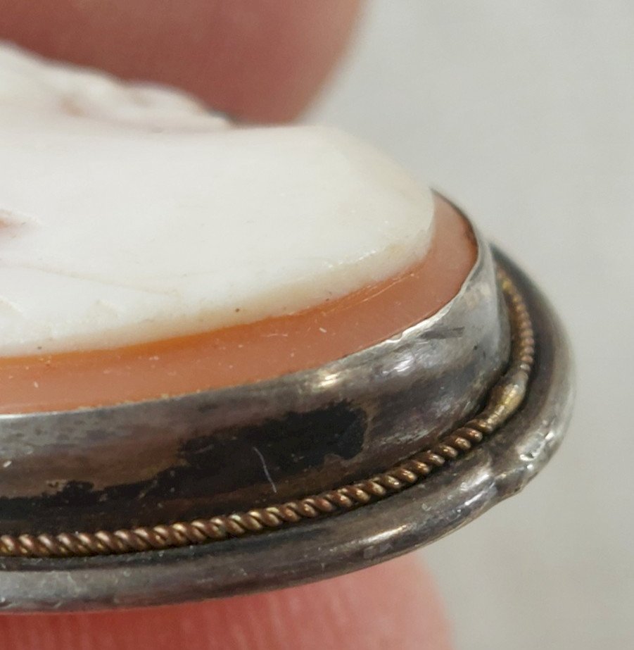 Antique pendant / cameo brooch, in silver in good condition, small defect unreadable hallmark dimensions 2.9 cm X 2.3 cm weight 5.76 g see photos Check out my other items! reduced shipping costs for combined purchases Condition: Used Item has been worn. possible imperfections.
