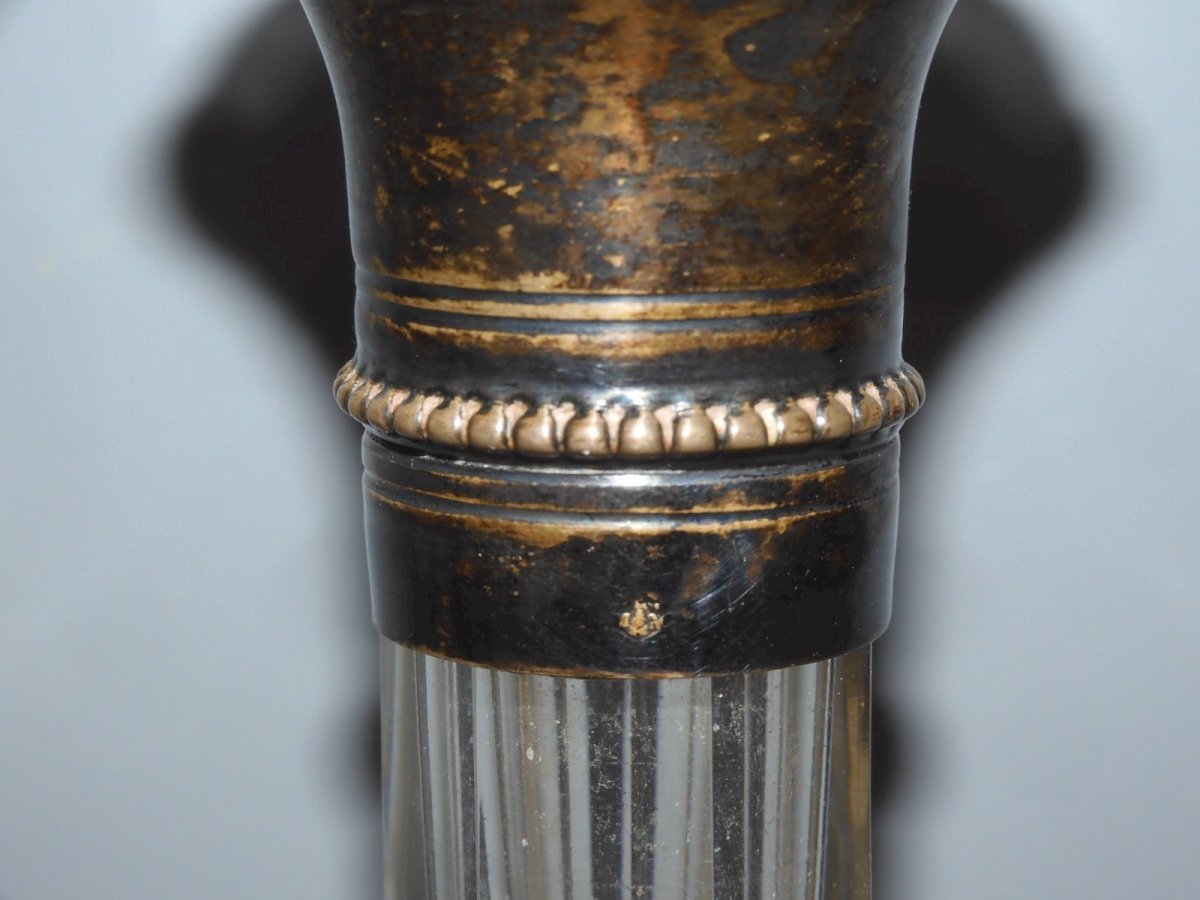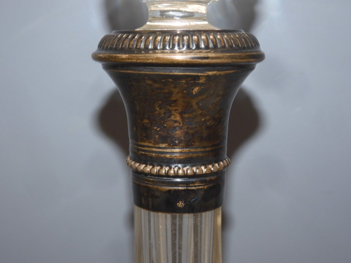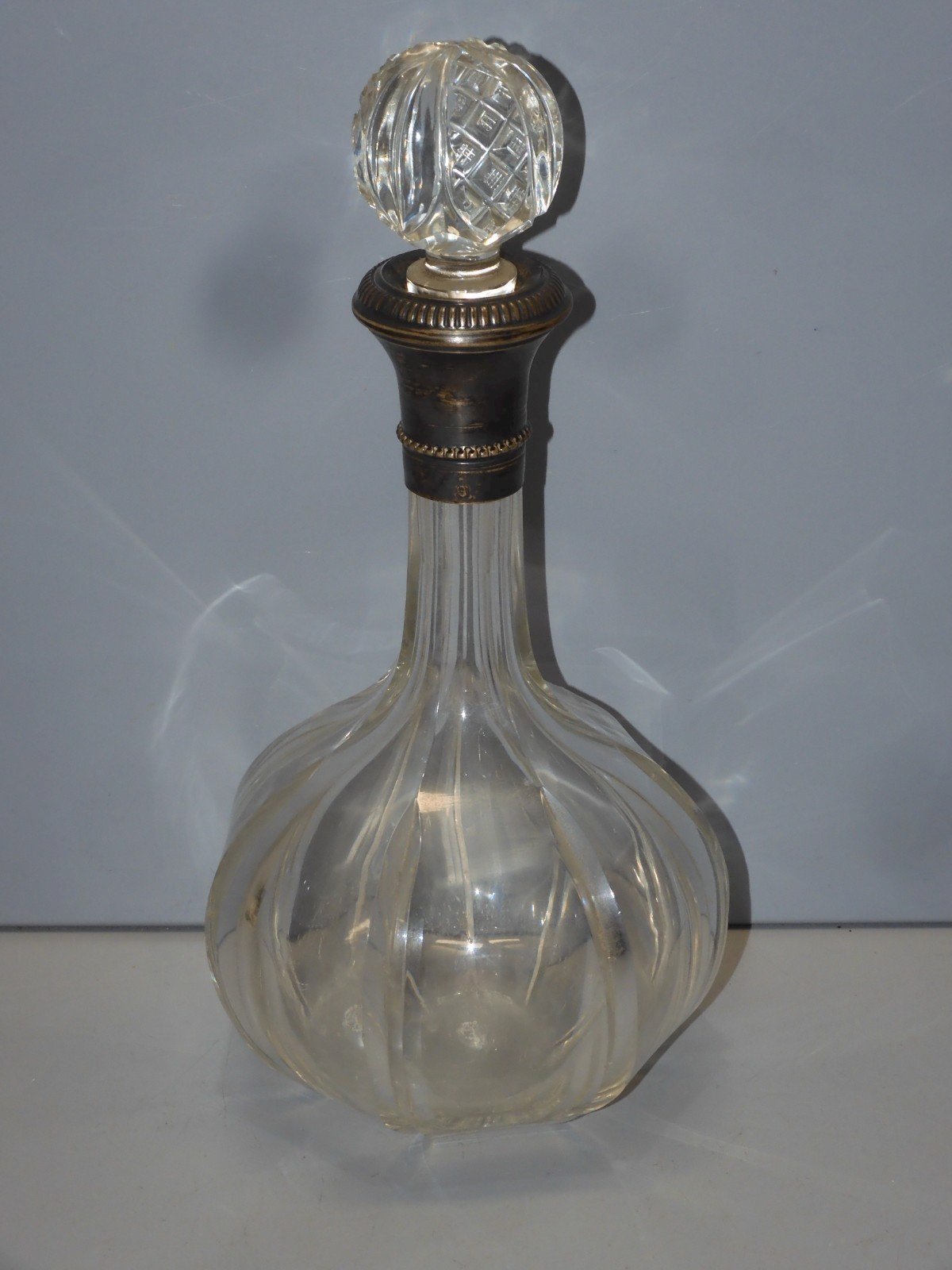 Old crystal carafe with silver mount, marked with the Minerva hallmark and a silversmith's mark to decipher without any apparent branding - has chips and wear on the edges and bottom of the stopper (photos) - used condition, found item from an attic, to be cleaned (interior limescale) - Ref. 1V250703/20 Height 17.4 cm & 21.7 cm with stopper - Diameter 10.5 cm - Outer neck diameter 4.15 cm and inner 1.95 cm - Weight 0.606 kg For contact, my email address: SHIPPING POSSIBLE WITH MONDIAL RELAY or COLISSIMO upon request, VERY GOOD PACKING GUARANTEED THANK YOU for CAREFULLY LOOKING AT ALL the PHOTOS as THEY ARE AN INTEGRAL PART of the DESCRIPTION and ALLOW YOU TO SEE the ITEM BEST with ITS POSSIBLE SMALL DEFECTS -