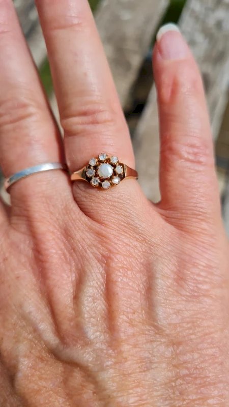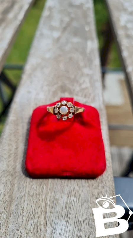 Above €25, please choose a carrier if possible. Take the opportunity to buy in bulk: 5 items - 10%, 10 items - 20%, 20 items - 30%. Please check the photos for imperfections. No sale for this ring for profiles: one prong is missing on the pearl. 18k gold ring with diamonds and pearl. Size: 15.5 or 9/49. #vintage ring #gift #chic #jewelry #ring #gold ring #diamonds #pearl #daisy ring