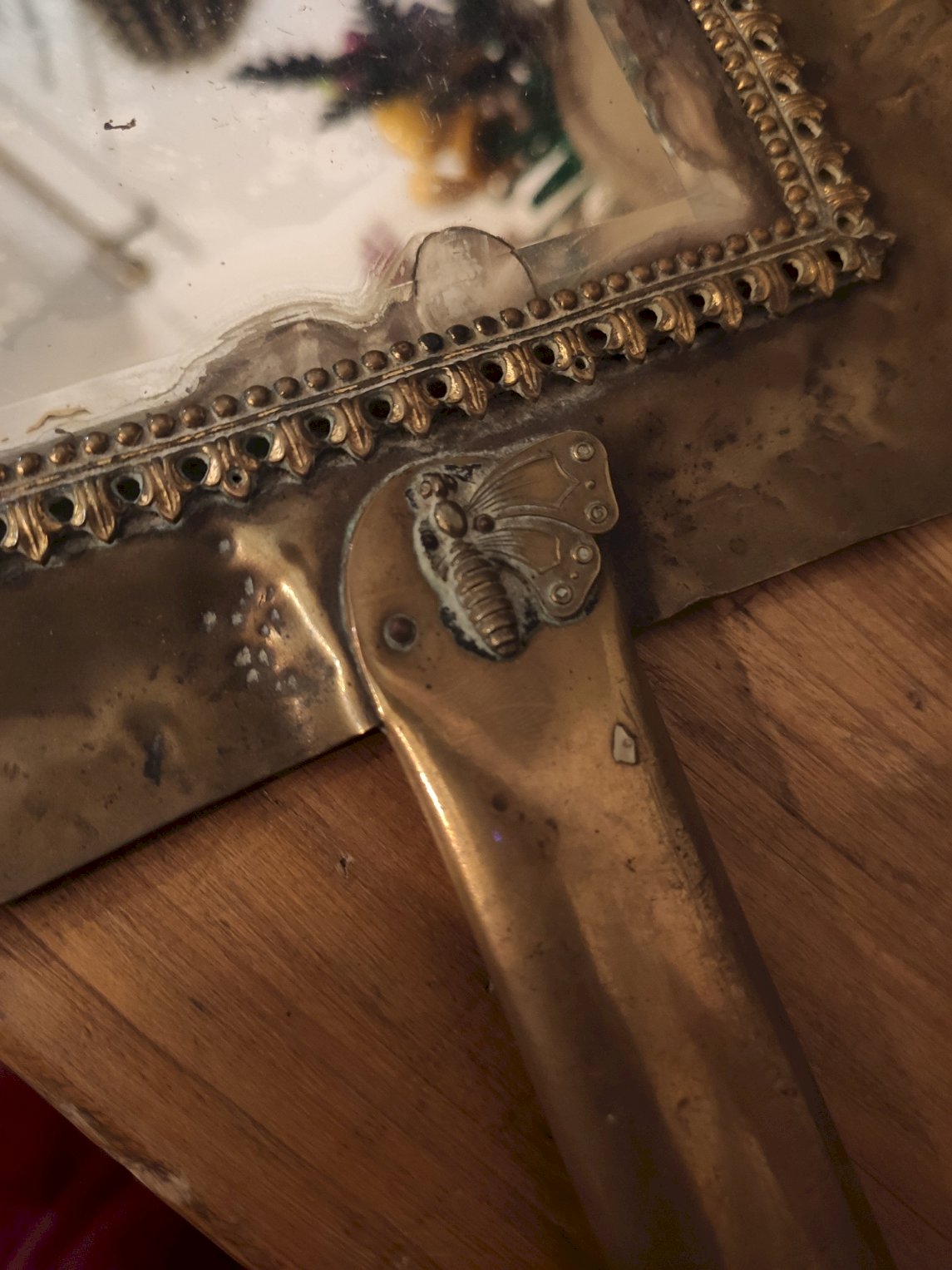 Antique Hand Mirror in Repoussé Brass - Arts & Crafts/Art Nouveau Style