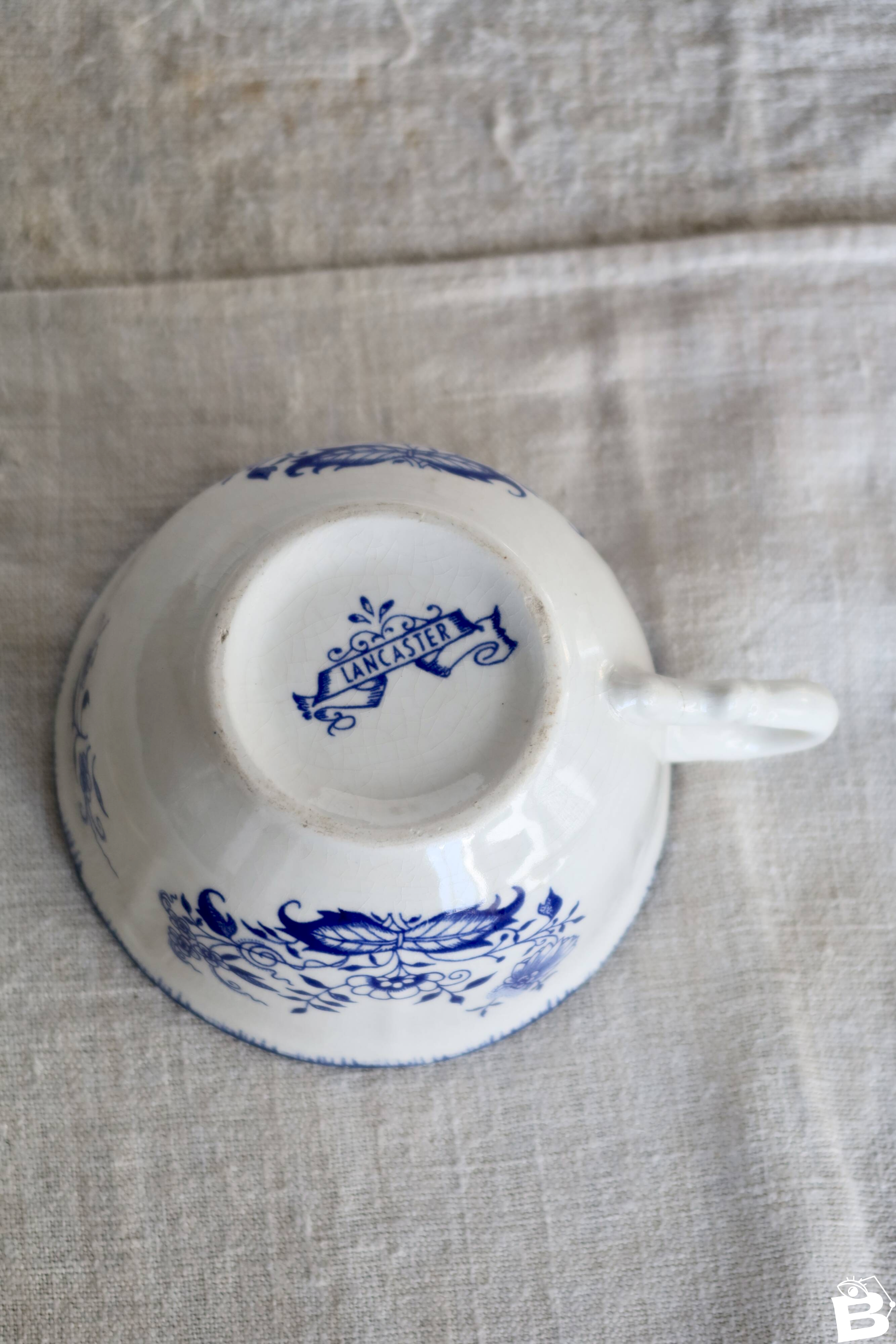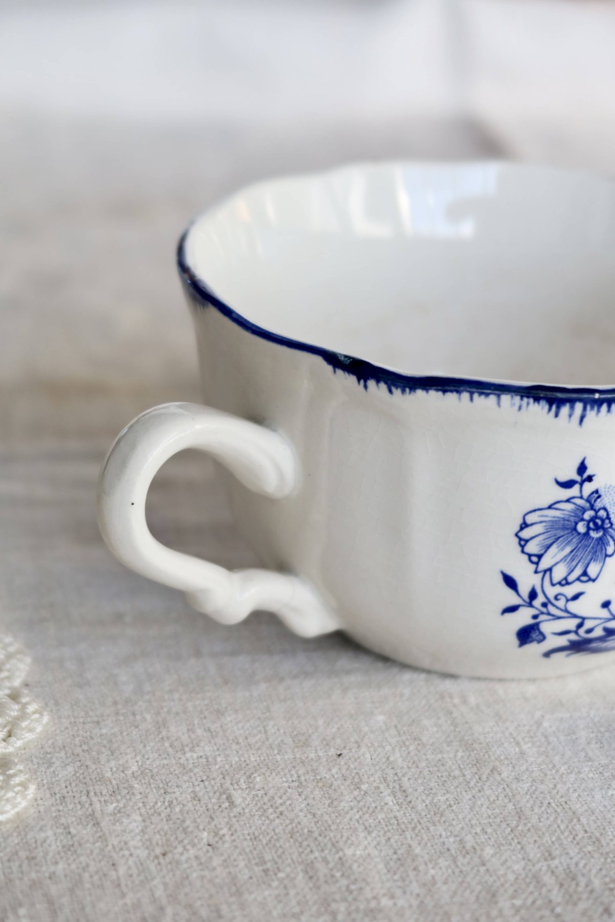 Very beautiful printed blue floral pattern, "combed" lip, and nice ergonomic handle; perfect for mix & match with other vintage blues. Very good overall condition, with micro traces of use consistent with age (no visible chipping). Two identical units available, price displayed for one. Dimensions: 12cm X 5.5cm. L: 12 W: 12 H: 5