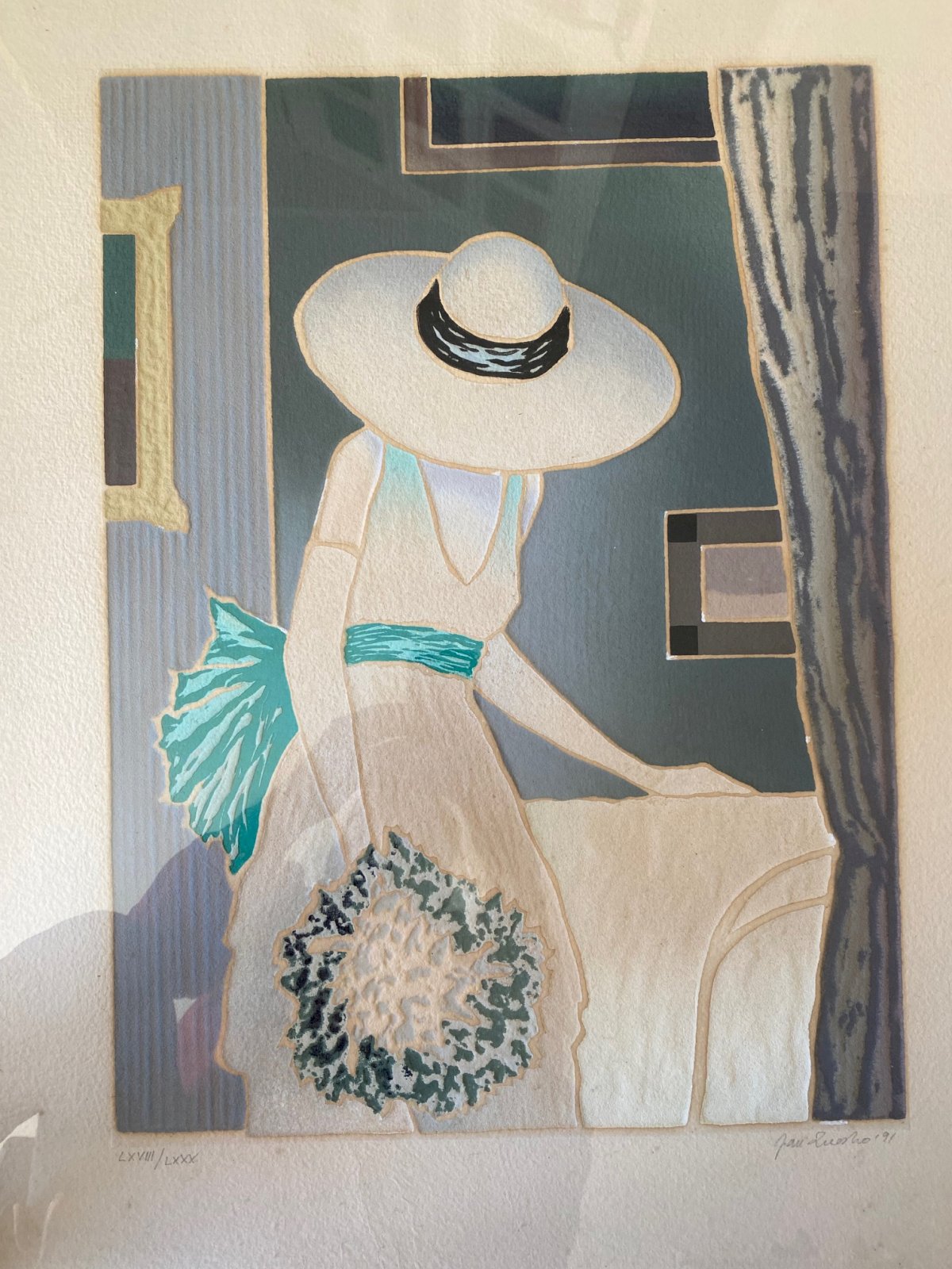 Stunning aqua engraving on Japanese paper, signed Jan Znosko (born in 1954), titled "The Woman with the Bouquet", framed and in excellent condition, dated 1991. The artist is quite well-regarded. Plate justified 68/80 in Roman numerals. 75 cm high by 55 cm wide.