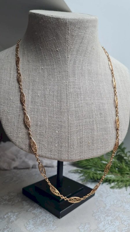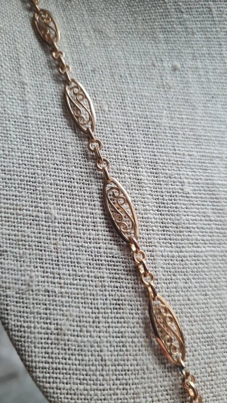 Above €25, please choose the carrier if possible. Take the opportunity to buy in bulk: 5 items - 10% 10 items - 20% 20 items - 30% Please closely examine the photos for imperfections, slight lack of gold plating (viewed under magnifying glass), stamp not identifiable, length: 74 cm, width: 0.7 cm #necklace #goldplatednecklace #gift #chic #vintagejewelry #antique #filigreejewelry #filigree #goldplating #longnecklace #longfiligreen necklace...