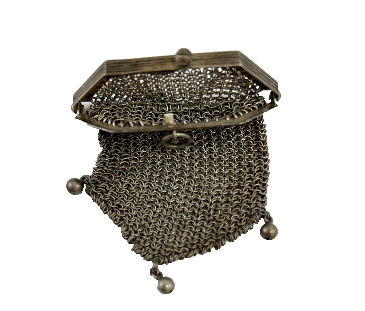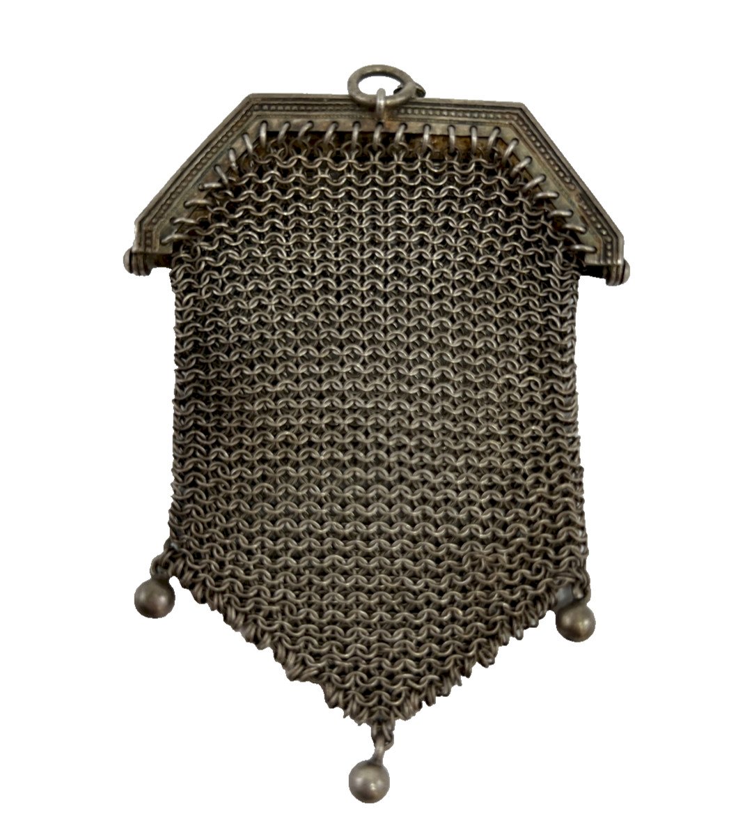 Small mesh bag, silver-plated minaudière. The edge is finely chiseled. Dimensions Height 7cm Width 5.5cm Authenticity: Original Type: Showcase item, Decorative Origin: France Subtype: bag Country of origin: France Style: Art Nouveau / Victorian Material: Silver-plated metal