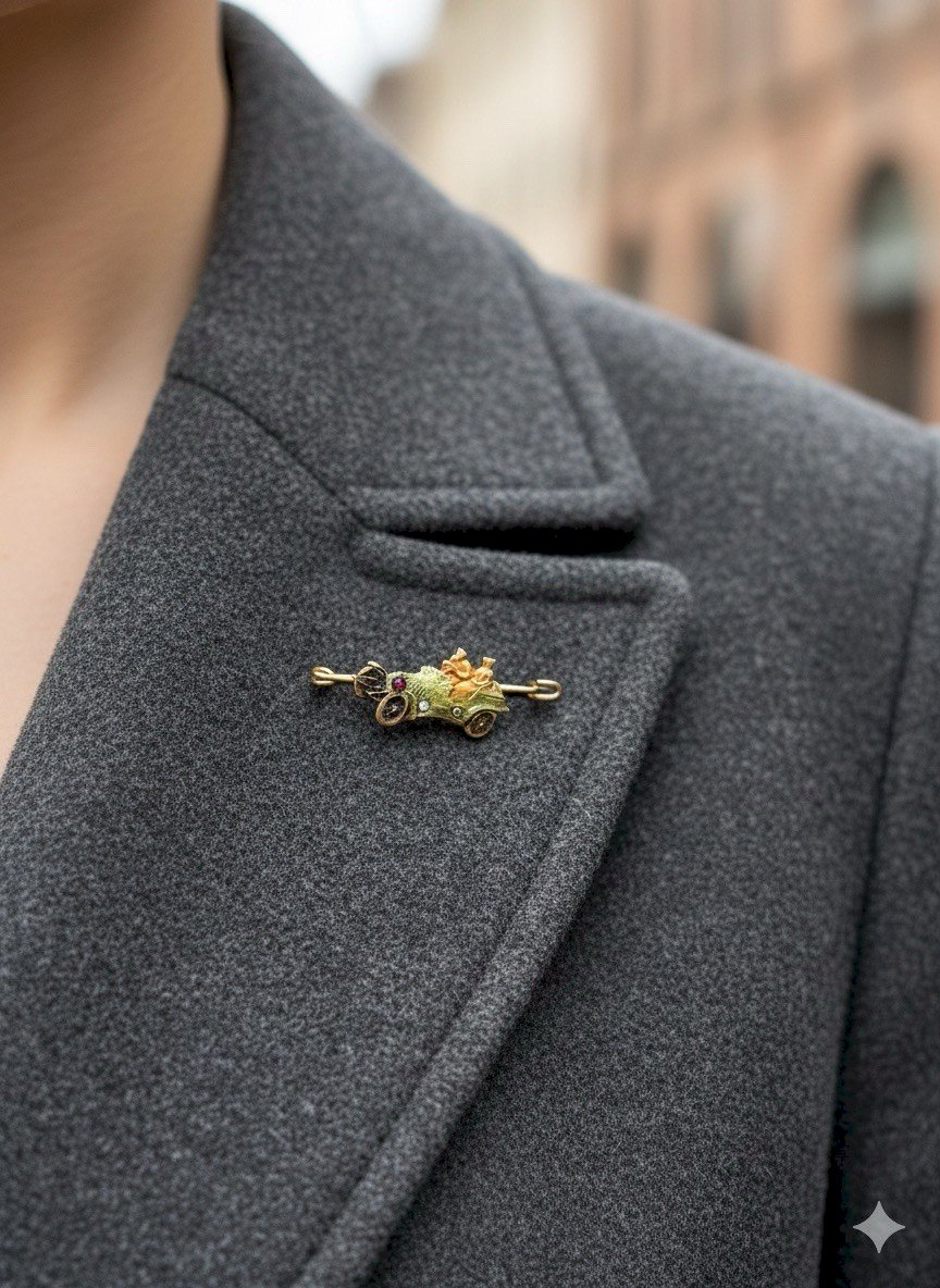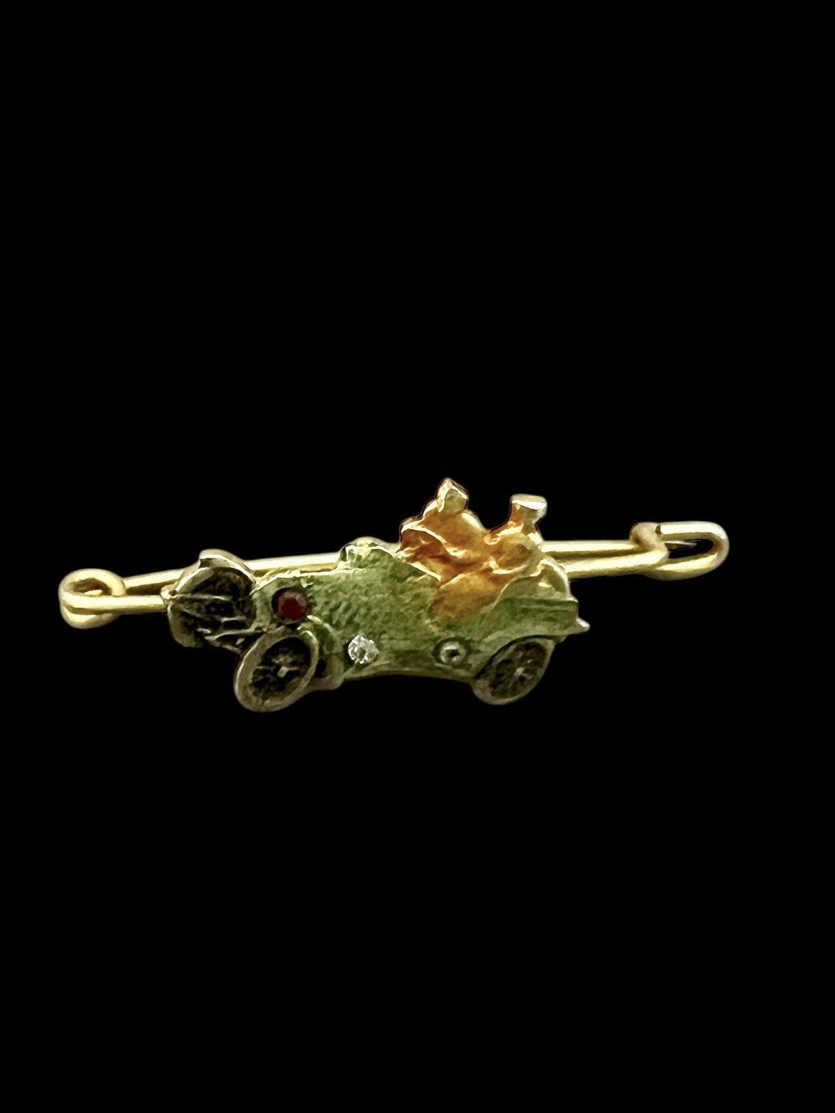 Antique Mini Brooch 1900 Collection. Rare Mini Antique Unisex Brooch Classic Car Collection. Stunning micro brooch from 1900, approximately 3 cm long and 1 cm wide at its widest point. Its weight is 1.1 g. Perfect condition colored rhinestones. Condition: Used: An item that has been worn... Used: An item that has been worn. Any possible imperfections. Type: Brooch Dominant Color: Gold Material: Enamel Country of Origin: France