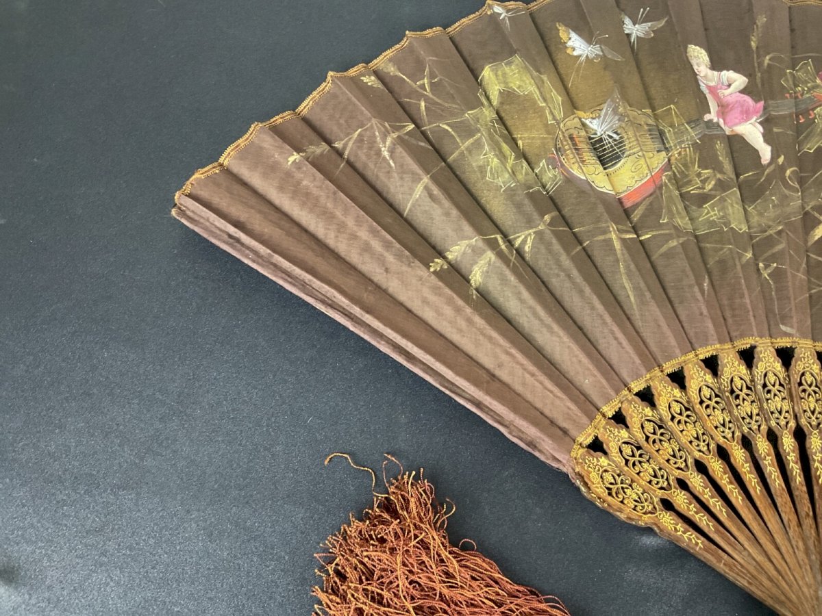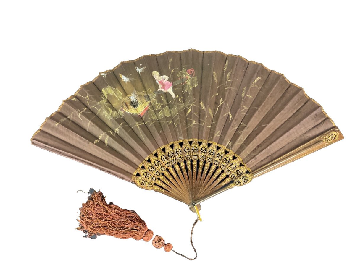 ANTIQUE NAPOLEON III FANS cherub decoration mandolin butterfly Width: 64 cm Type: Showcase item, Decorative Material: Wood Style: Napoleon III