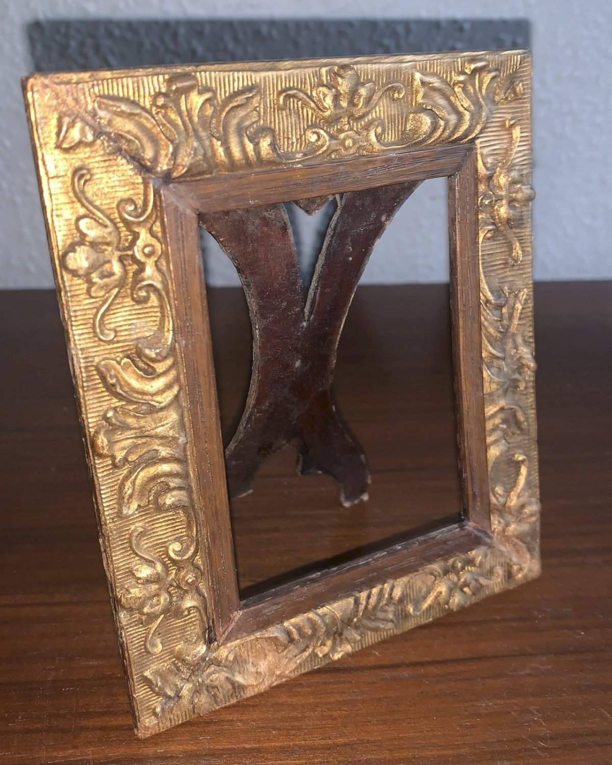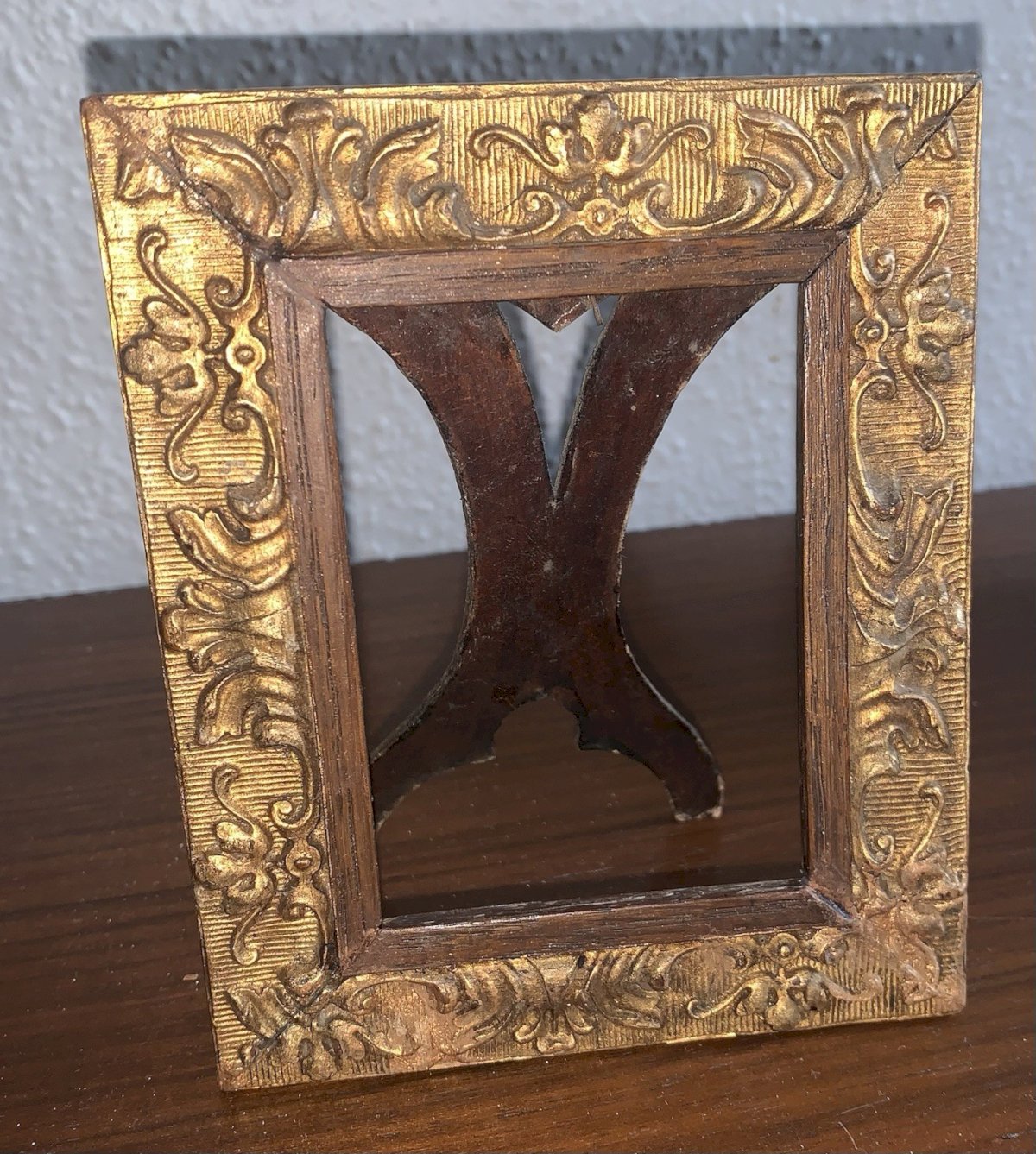 Very old small carved and gilded wooden frame from the 19th century, Rococo style. Leather foot. The piece is still in good condition, the frame is slightly "warped." External dimensions: 12.8x10.7cm. Internal dimensions for photos or others: 9x6.7cm. Authenticity: Original. Type: Showcase item, Decorative. Origin: France. Subtype: Frame. Country of manufacture: France. Material: Wood. Style: Louis XV, Neoclassical.