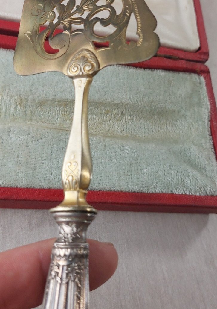 Old pie server, solid silver handle, in good condition box, minerva hallmark + another one, total length 30 cm, see photos. Check out my other items! Shipping costs are reduced for combined purchases.
