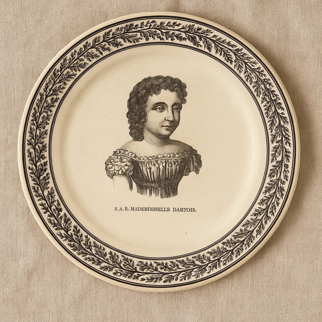 Antique plate Creil Montereau 19th century – Royal portrait of Mademoiselle d'Artois